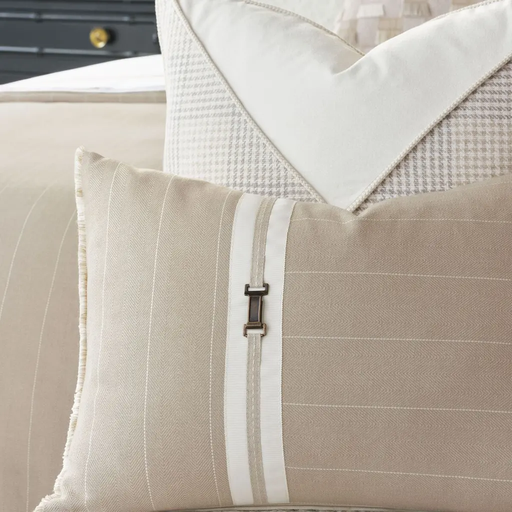 Harlen Mitered Houndstooth Check Pillow, Ivory