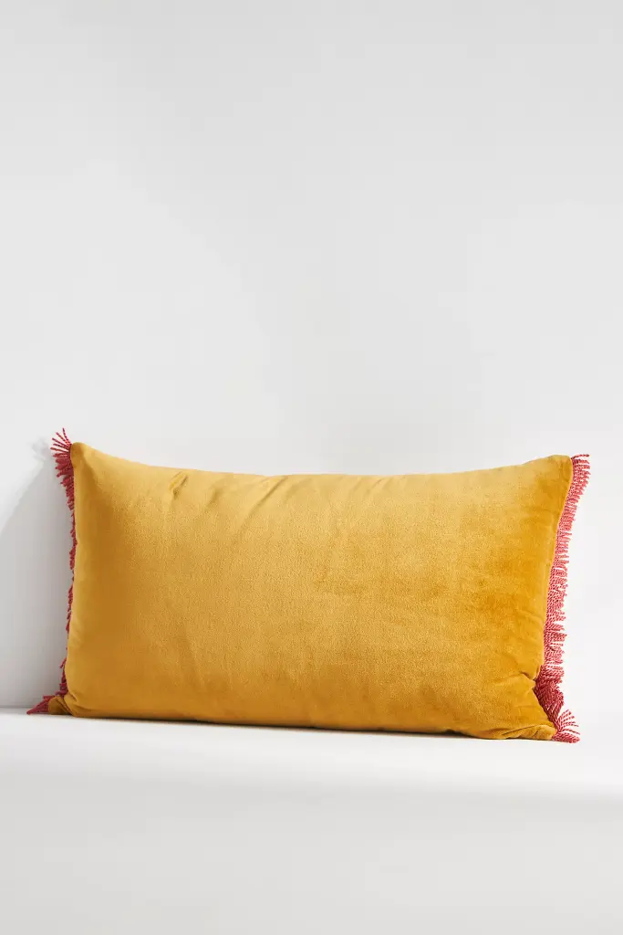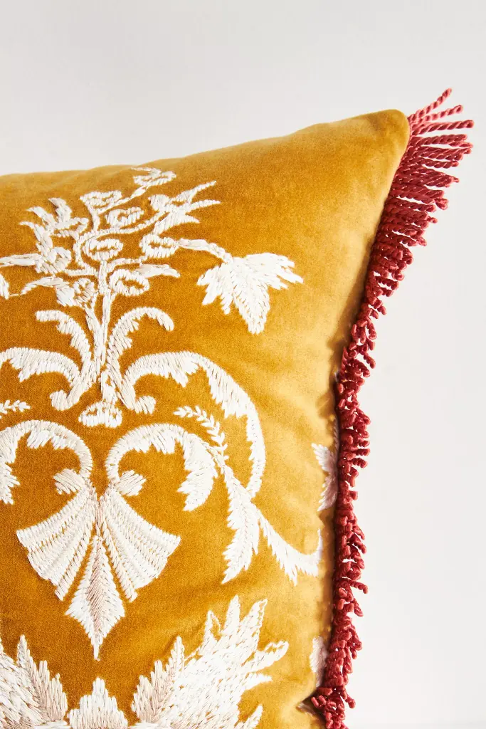 Adorned with embroidered florals and subtle fringe, this pillow lends understated elegance to any sofascape.