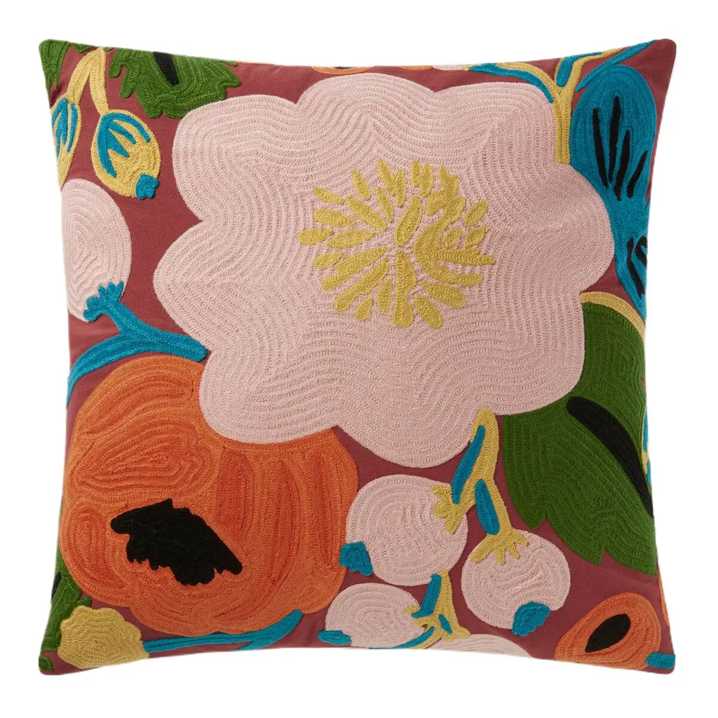 The Harmony Pillow features a delightful design that brings a cheerful and inviting touch to any space. With its plush texture, it ensures comfort while showcasing a vibrant mix of colorful patterns.