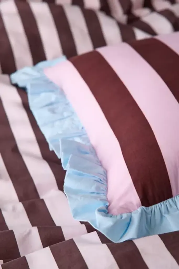 Bring vibrant color to your space with this decorative accent pillow featuring an allover stripes with contrasting ruffled trims we love. Available exclusively at Urban Outfitters. **Features** \- Harper Awning Striped Throw Pillow from UO Home \- Striped accent pillow to add a pop of color to your sofa \- Finished with an allover striped motif \- Ruffled edges for soft finishing touch \- Versatile – use it to add a soft touch to your bed or sofa \- An eco-friendly upgrade, this item is OEKO-TEX® Standard 100 certified free of harsh chemicals \- UO exclusive **Content + Care** \- Pillow insert included \- 100% Cotton; 100% polyester fill \- OEKO-TEX® Standard 100 Certified \- Meets OEKO-TEX® Standard 100 guidelines which independently test each component for harmful substances for textiles you can trust \- Machine wash pillowcase only \- Imported **Size** \- Dimensions: 18"l x 18"w \- Ruffle: 2.25"