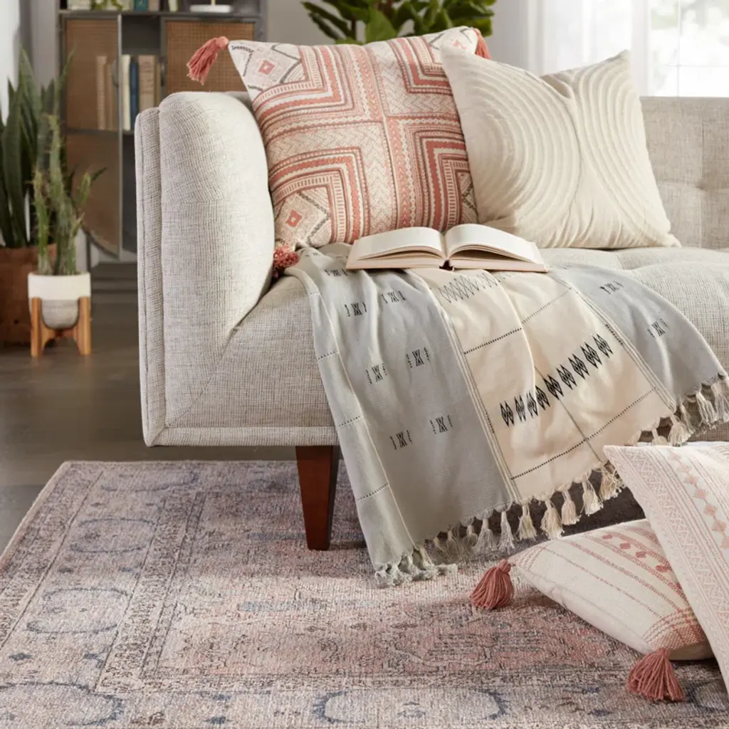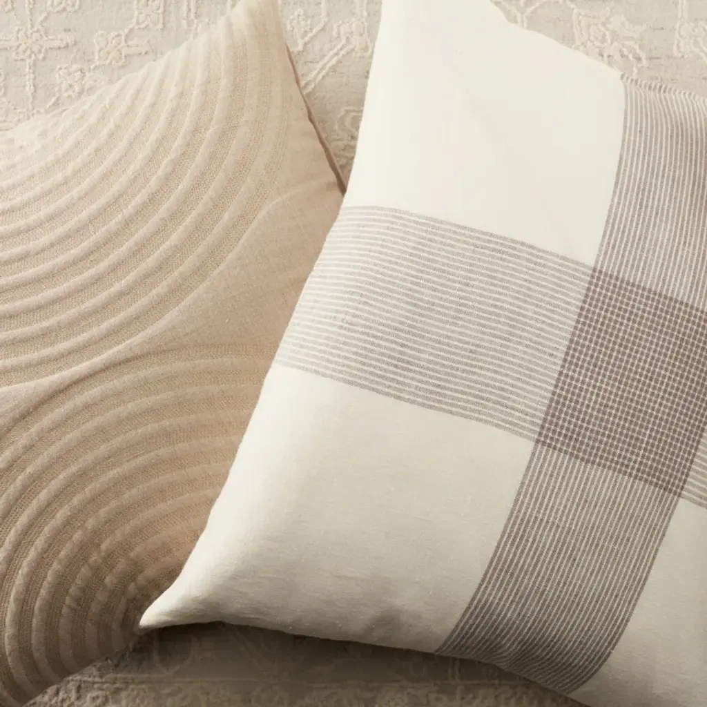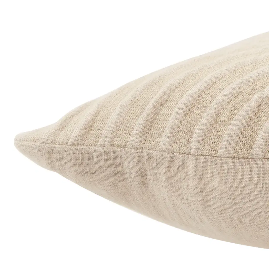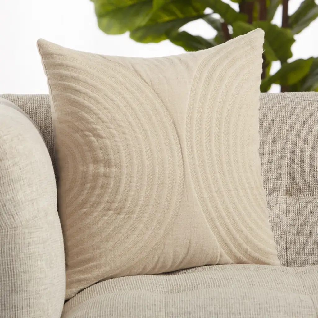 Showcasing clean lines and neutral colors, this accent pillow features a soft, linen weave that provides chic style to any space. The varied light taupe colorway and mirrored curve design add elegance and soft texture to seating areas and beds.