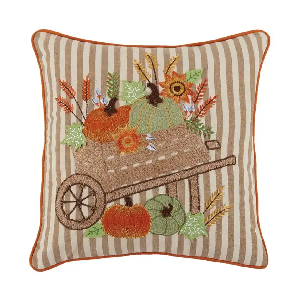 Harvest Pumpkin Cart Embroidered Pillow - 16 X 16