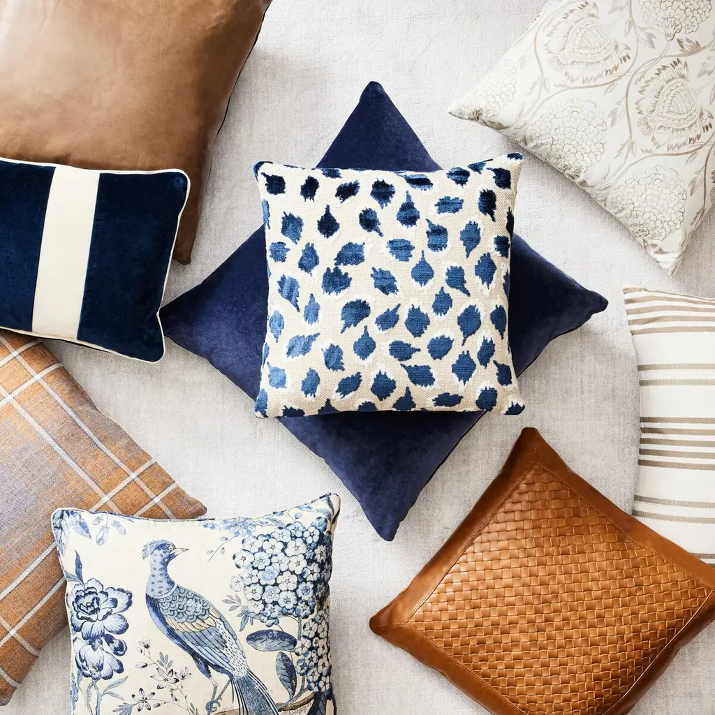 Designed by us and available only at One Kings Lane: Dress up a favorite sofa or chair with this pillow, made of plush velvet with knife edges. Insert included. Zipper closure.