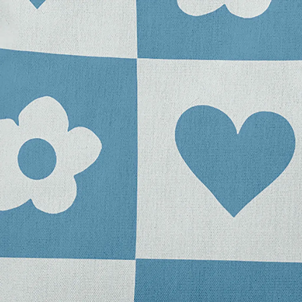 Heart And Flowers Grid Decorative Indoor/outdoor Pillow, Chambray, 20"x20"