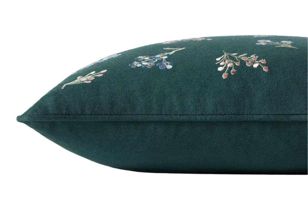 The Heather Pillow features a rich background embellished with a lively mix of colorful floral and geometric patterns. This striking design adds a refreshing touch to any space while providing both comfort and style.