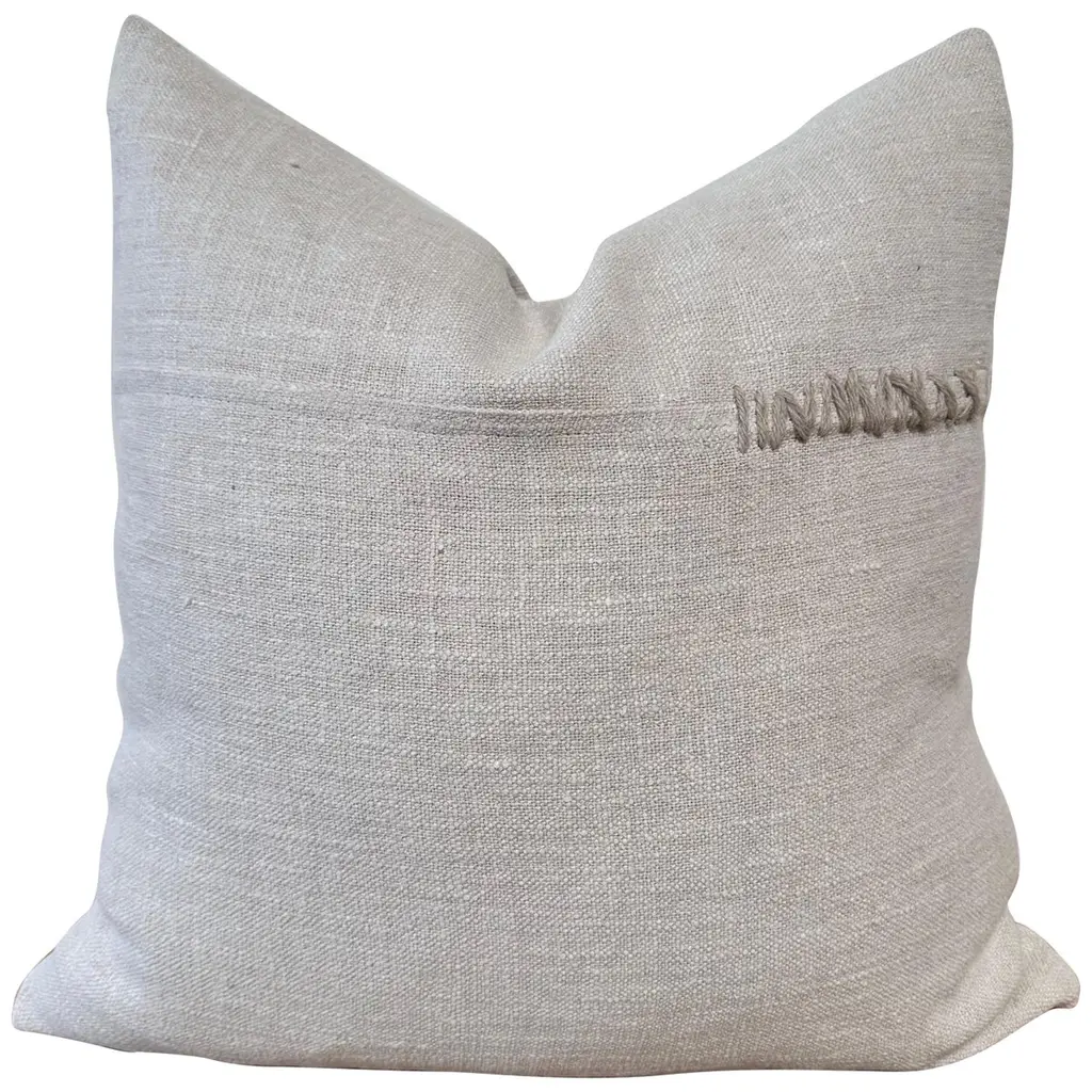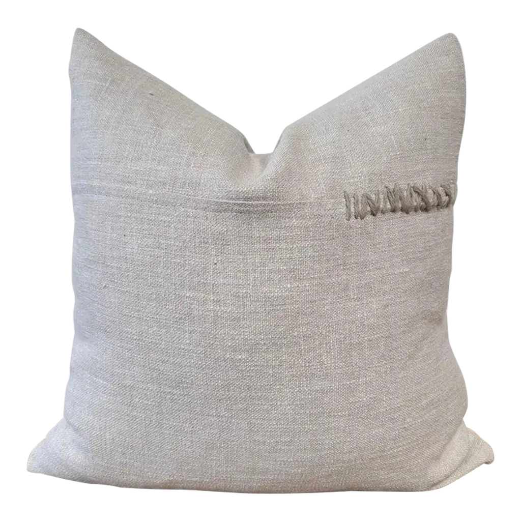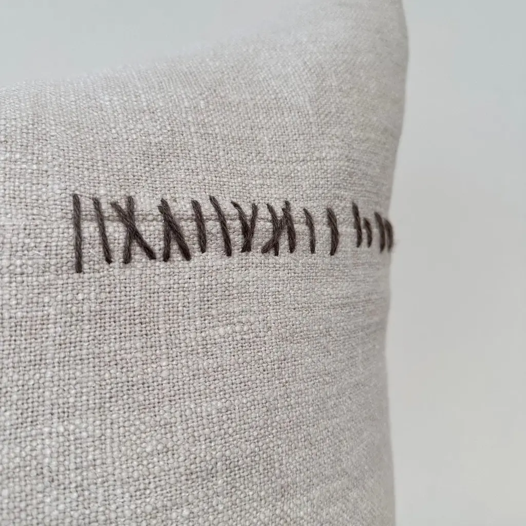 Heavy Woven Textured Linen Pillow With Hand Stitch Details