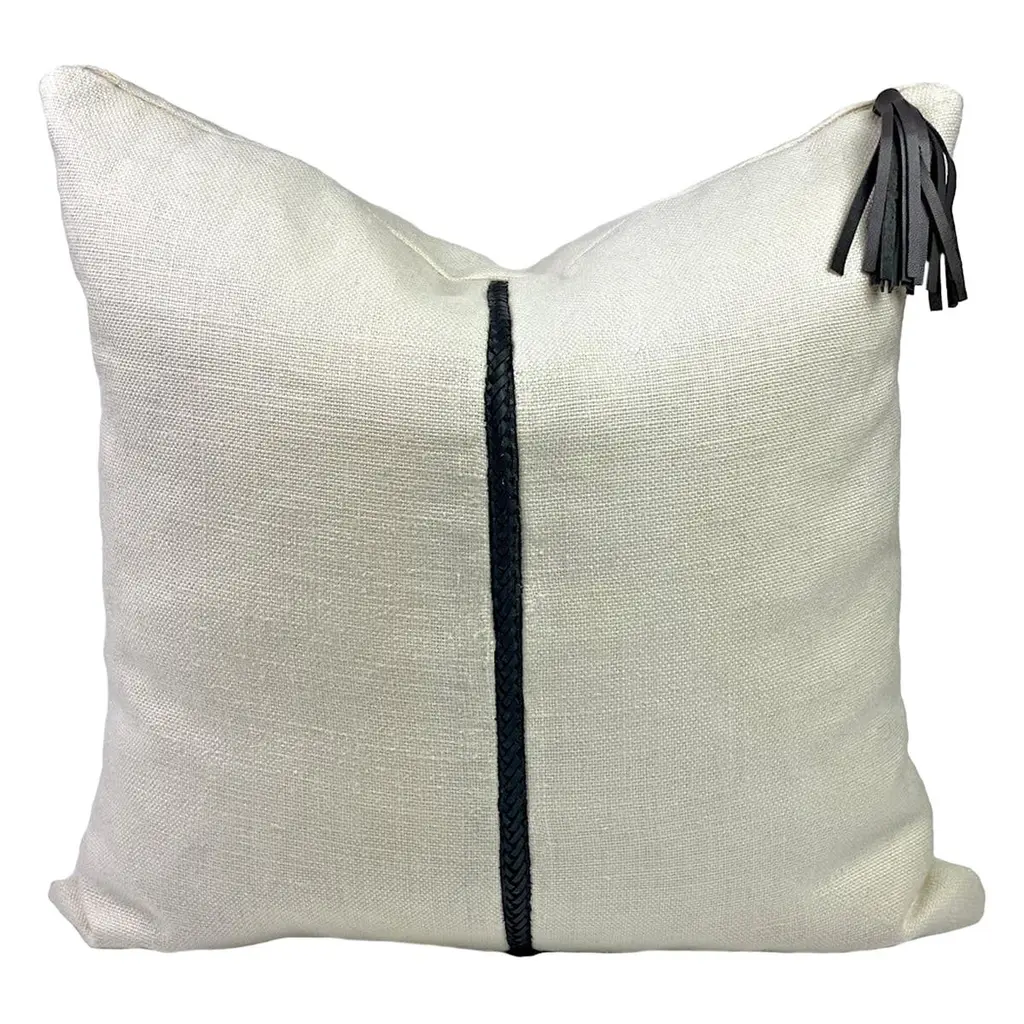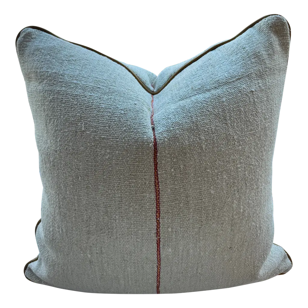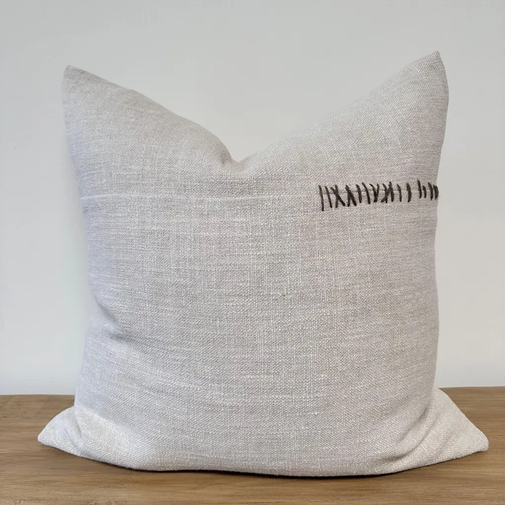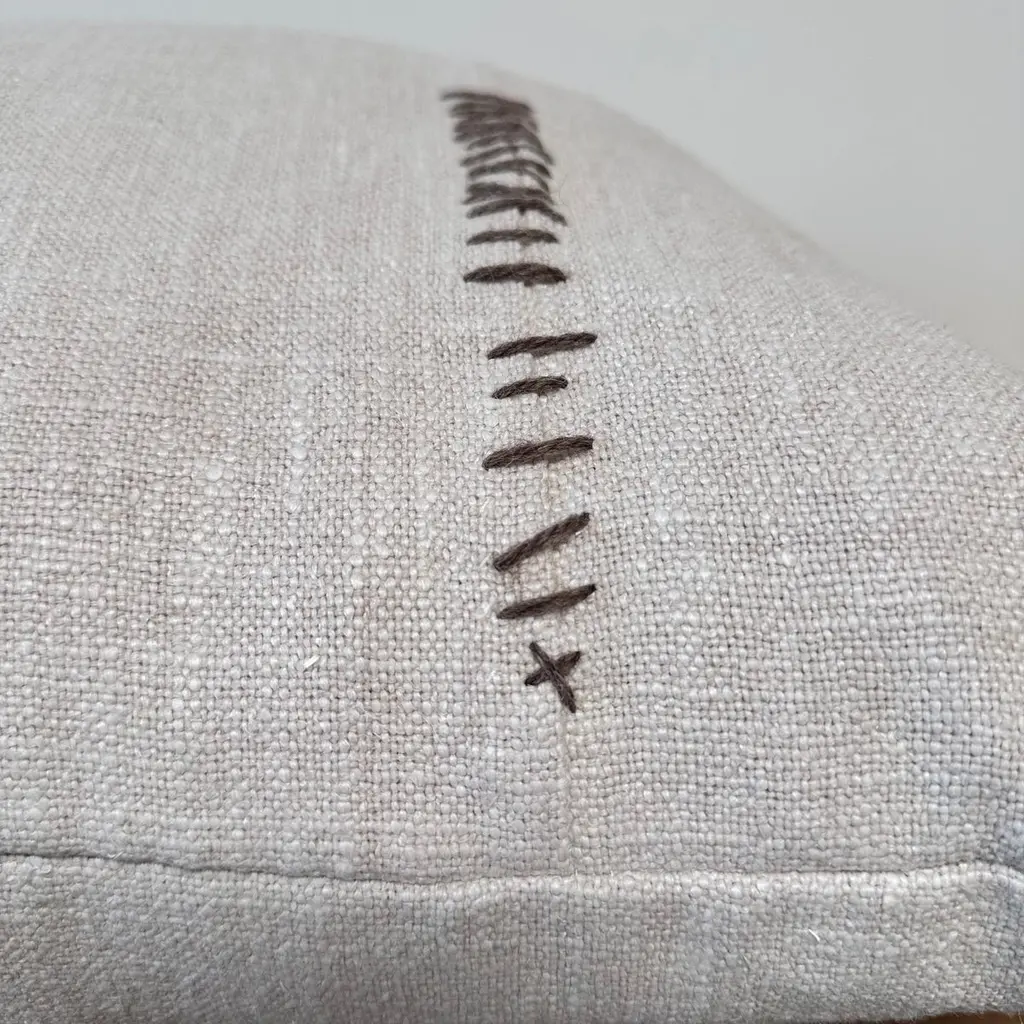 Heavy Woven Textured Linen Pillow With Hand Stitch Details