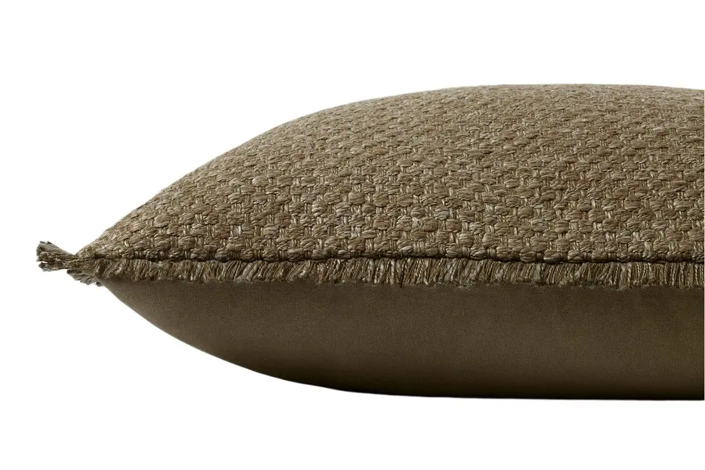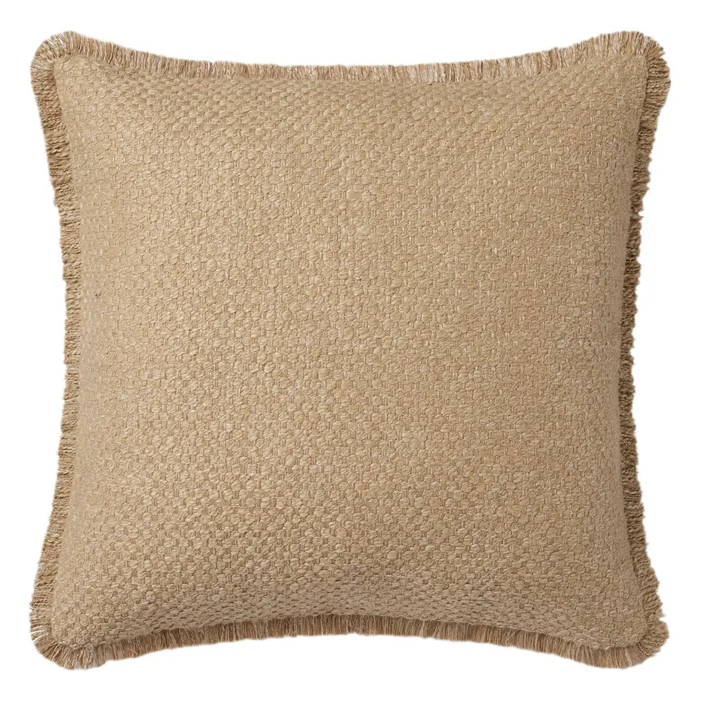 This pillow offers a warm, earthy aesthetic with its soft natural fabric and subtle textured design. This versatile piece adds a touch of rustic charm to any space while providing comfort and a cozy feel.