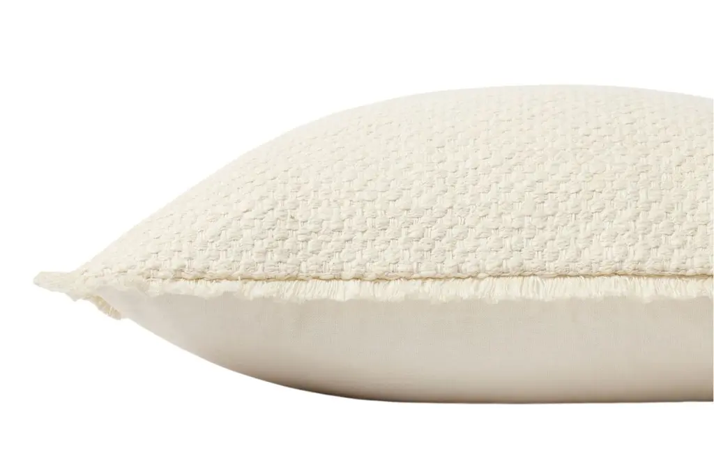 This pillow offers a warm, earthy aesthetic with its soft natural fabric and subtle textured design. This versatile piece adds a touch of rustic charm to any space while providing comfort and a cozy feel.