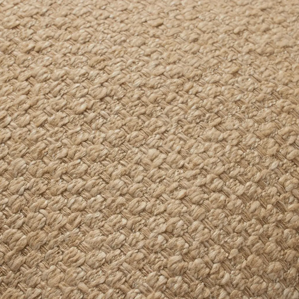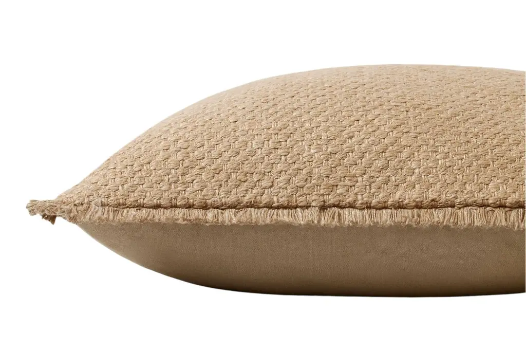 This pillow offers a warm, earthy aesthetic with its soft natural fabric and subtle textured design. This versatile piece adds a touch of rustic charm to any space while providing comfort and a cozy feel.