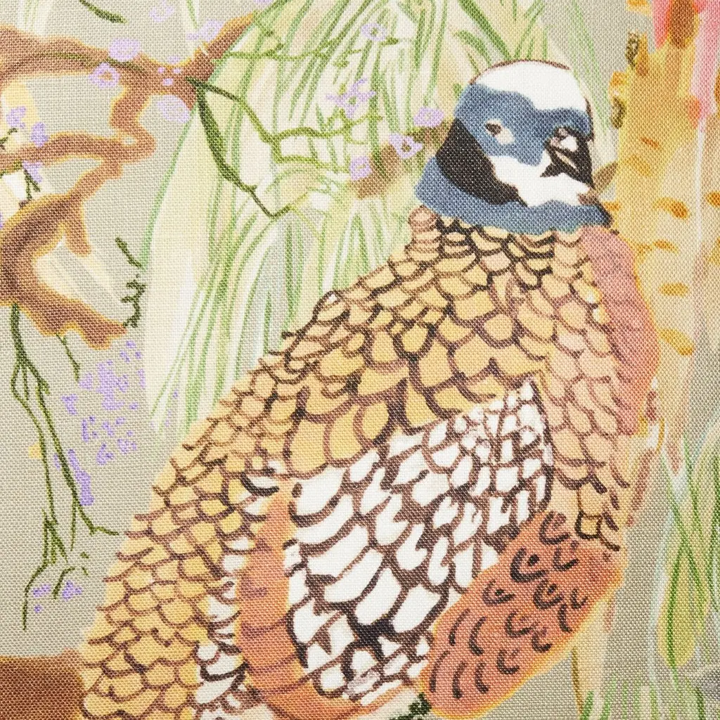 Designed by us and available only at One Kings Lane: Dress up a favorite sofa or chair with this pillow, crafted of linen with a beautifully detailed pheasant design on the front and solid saddle leather on the reverse. Insert included. Zipper closure.