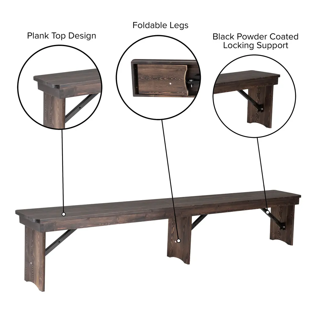 Hercules Series 8' X 12'' Solid Pine Folding Farm Bench With 3 Legs