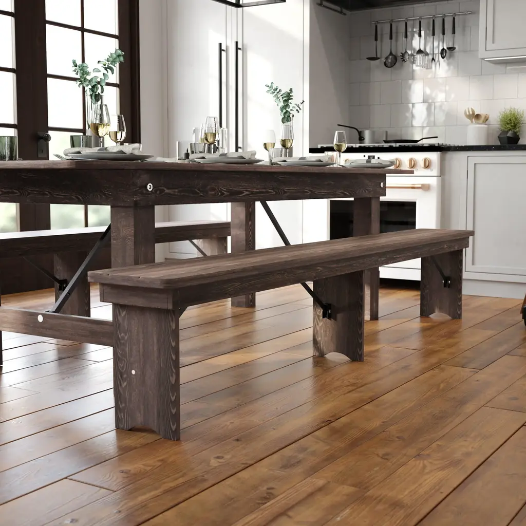 Hercules Series 8' X 12'' Solid Pine Folding Farm Bench With 3 Legs