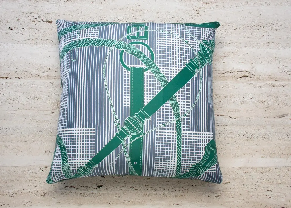 Introducing the exquisite limited edition Hermes Fabric Clic Clic Quadrille, a truly exceptional piece that encapsulates the essence of luxury, craftsmanship, and timeless beauty. Meticulously handcrafted using discontinued Hermes fabrics, these pillows are a testament to the heritage and artistry of the renowned fashion house. Please note that due to the nature of the fabric, each cut presents a distinct look, creating individual variations that make every pillow truly unique. If you would like to see the exact pillow design that is available for purchase, please contact us. 100% Silk25/75 Down/Feather Fill100% Authenticity Guaranteed.
