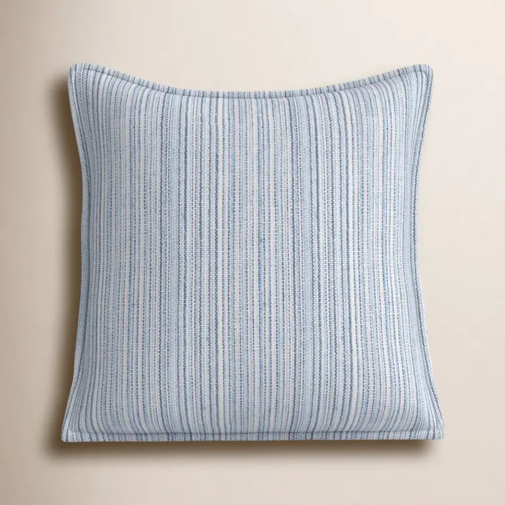 A soft and plump square cushion created from our Furrow fabric, a fine herringbone pattern. Finished with a smart ticking stripe, Picket, can easily be incorporated into your interiors alongside the other small prints and complementing colors of the Garden Path collection, a homage to the English Garden. -, Dark Blue,