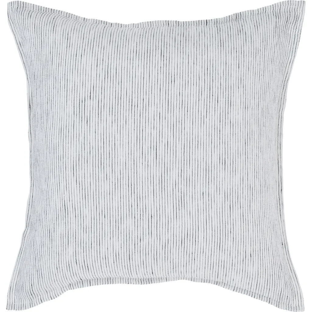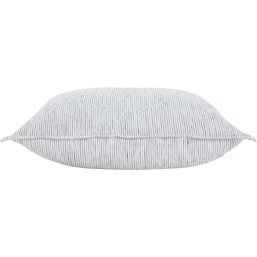 Make a bold statement with this throw pillow featuring a striking herringbone stripe design. Perfect for pairing with patterned pieces, its crisp lines add subtle detail without overwhelming the eye. Crafted with a durable structure and filled with feather-down, it offers both style and comfort. Elevate your space with this versatile accent that combines utility and aesthetics for a touch of contemporary flair. Product Features: White and black square pillow Double sided striped pattern For indoor use only Perfect addition for sofa, loveseat, couch, bed, or outdoor bench Care instructions: spot clean only Dimensions: 20" high x 20" wide Material(s): Shell: linen Filling: feather down