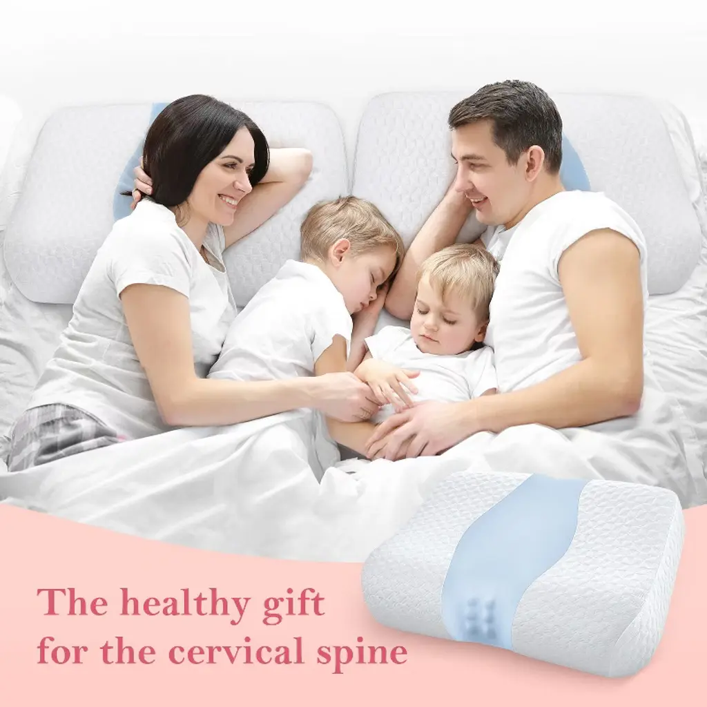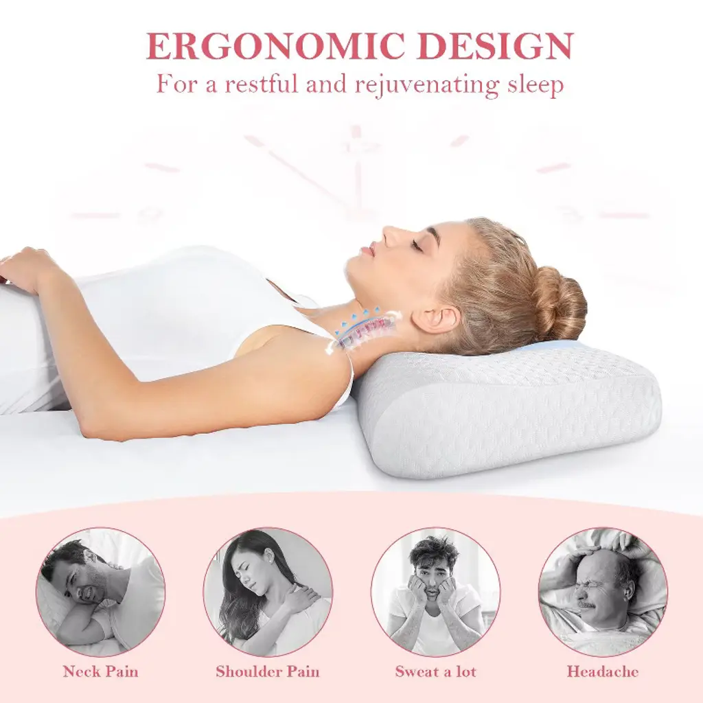 Introducing our Ergonomic Memory Foam Cervical Pillow, designed for side, back, and stomach sleepers. This premium pillow supports natural spine alignment, reducing neck pain while molding to your head and neck for customized support. Enhanced airflow ensures a cooler sleep experience, minimizing snoring and improving overall sleep quality. The hypoallergenic, machine-washable cover keeps the pillow clean and free from dust mites and allergens. Trusted by thousands, this ergonomic pillow guarantees satisfaction for healthier, more restful sleep. Elevate your sleep experience today!