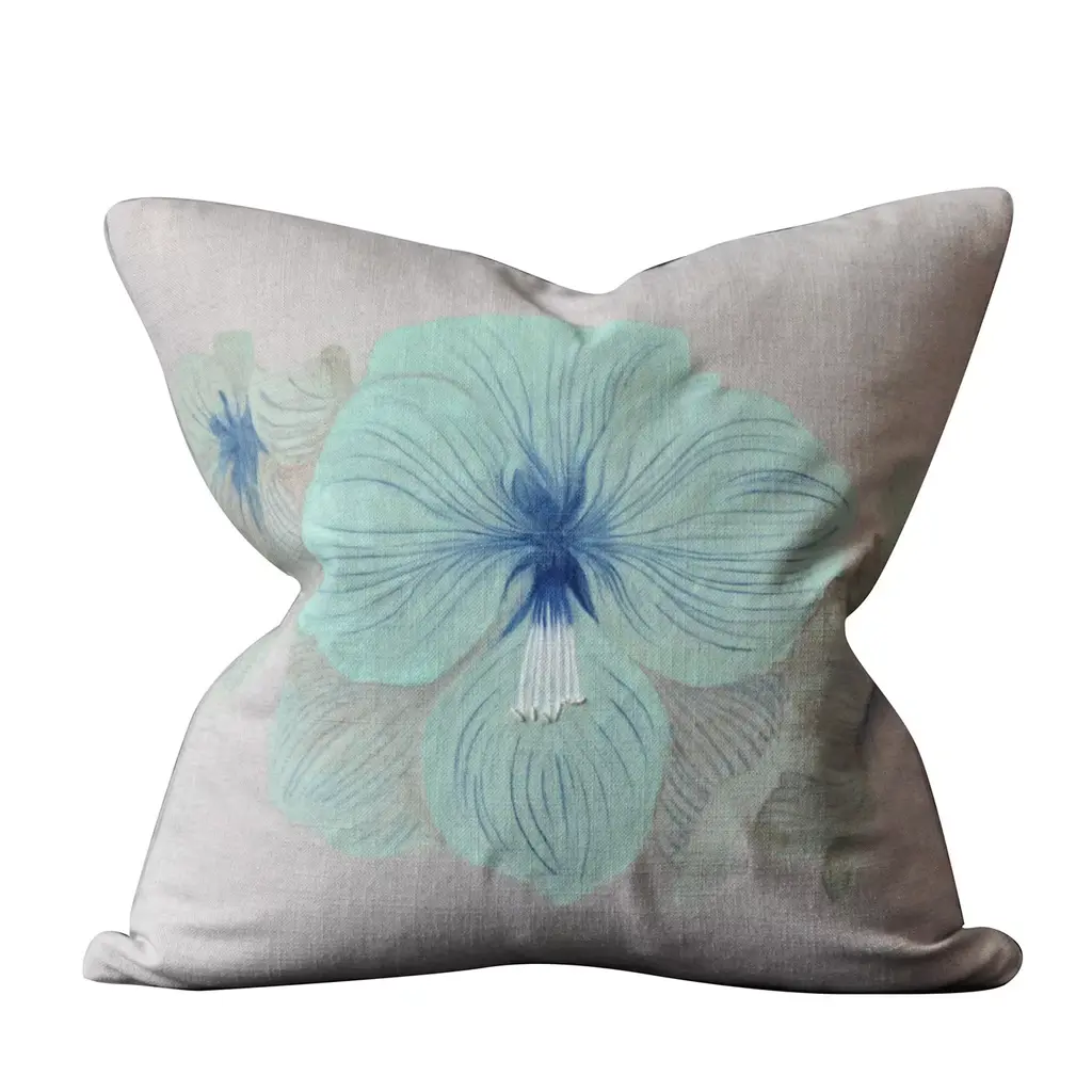 Hibiscus Blooms, Floral Print Outdoor Pillow, Beige And Taupe, 18"x18"