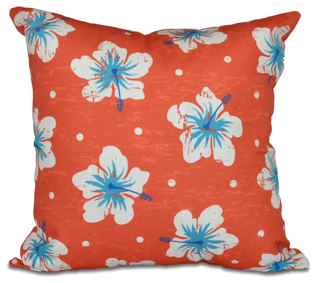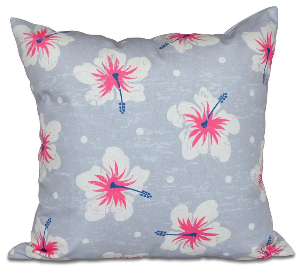 Hibiscus Blooms, Floral Print Pillow, Blue, 18"x18"