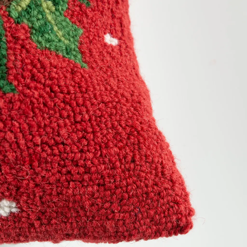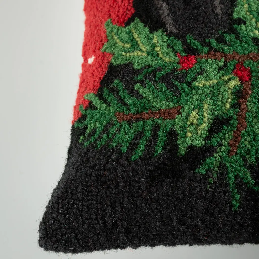 Holiday Black Lab With Holly Hand-Hooked Wool Throw Pillow