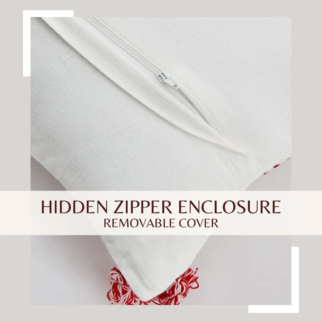 Elevate your holiday ambiance with these stunning decorative pillows. Each pillow includes a plush insert and a convenient zipper enclosure, ensuring easy removal and care. These pillows include intricate embroidery, delicate applique, and beadwork, creating a blend of textures and designs.