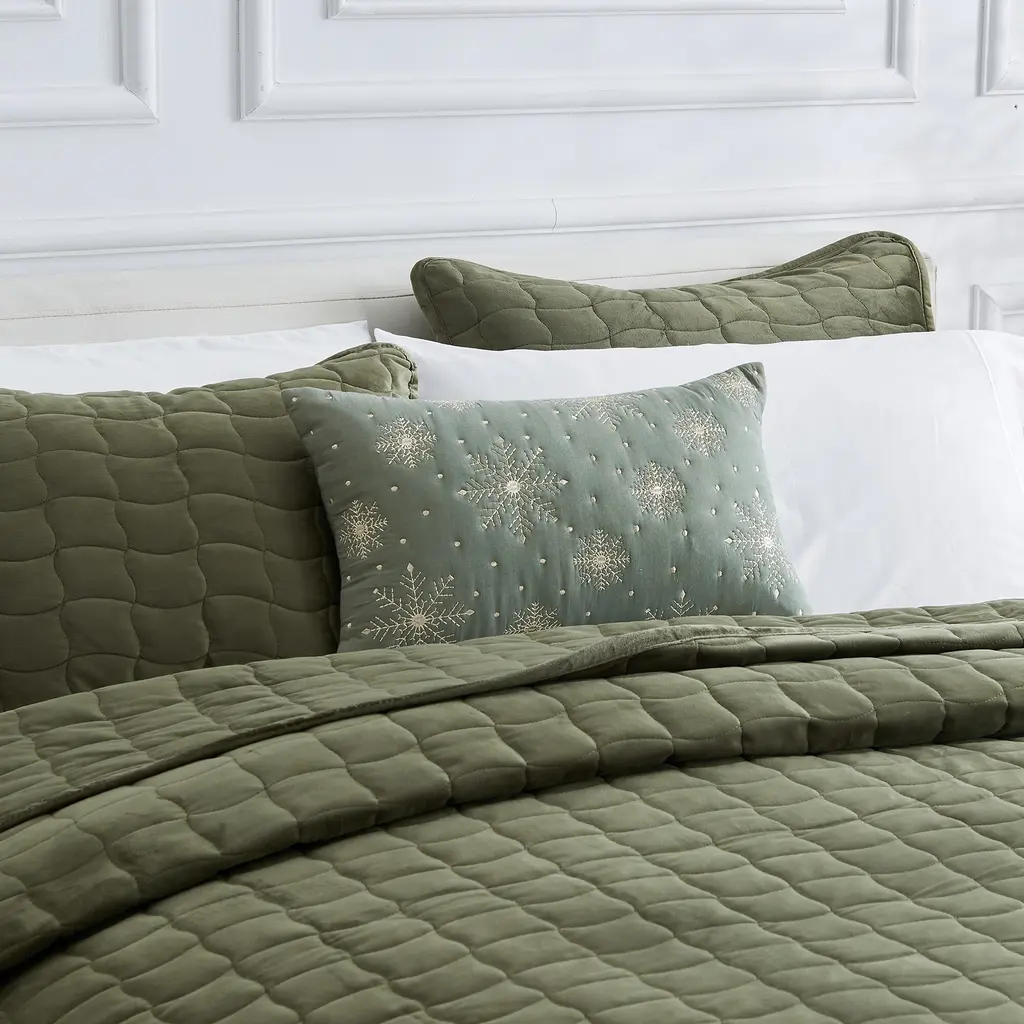 Holiday Decorative Accent Throw Pillow 20 X 14 - Green Embroidered Snowflake