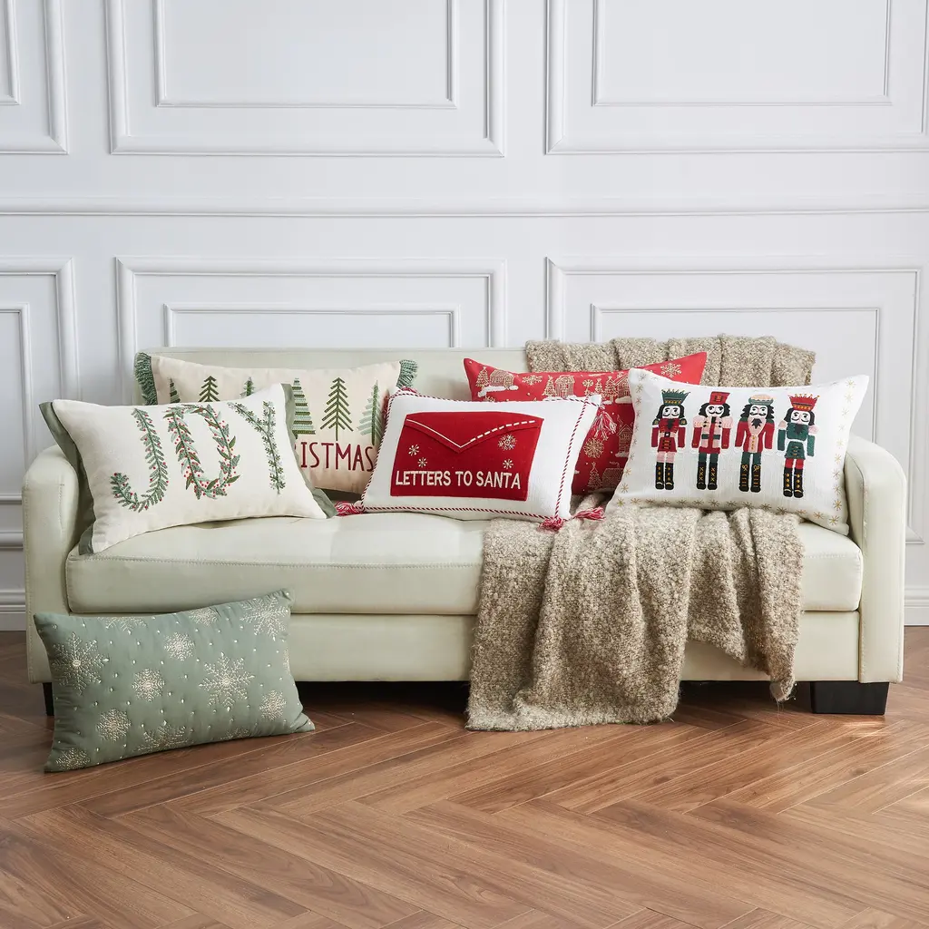 Elevate your holiday ambiance with these stunning decorative pillows. Each pillow includes a plush insert and a convenient zipper enclosure, ensuring easy removal and care. These pillows include intricate embroidery, delicate applique, and beadwork, creating a blend of textures and designs.