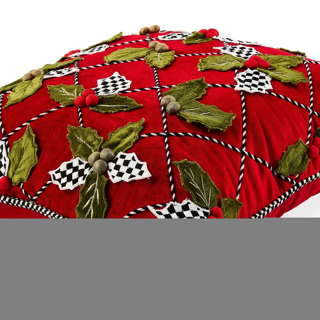 Deck you sofa for the holidays with this Holly Lattice Throw Pillow. Featuring festive holly on a lattice background, detailed with black and white stripes.