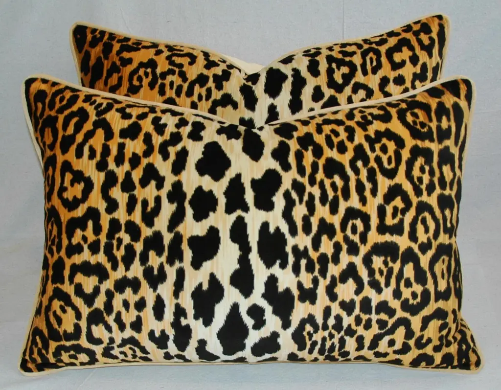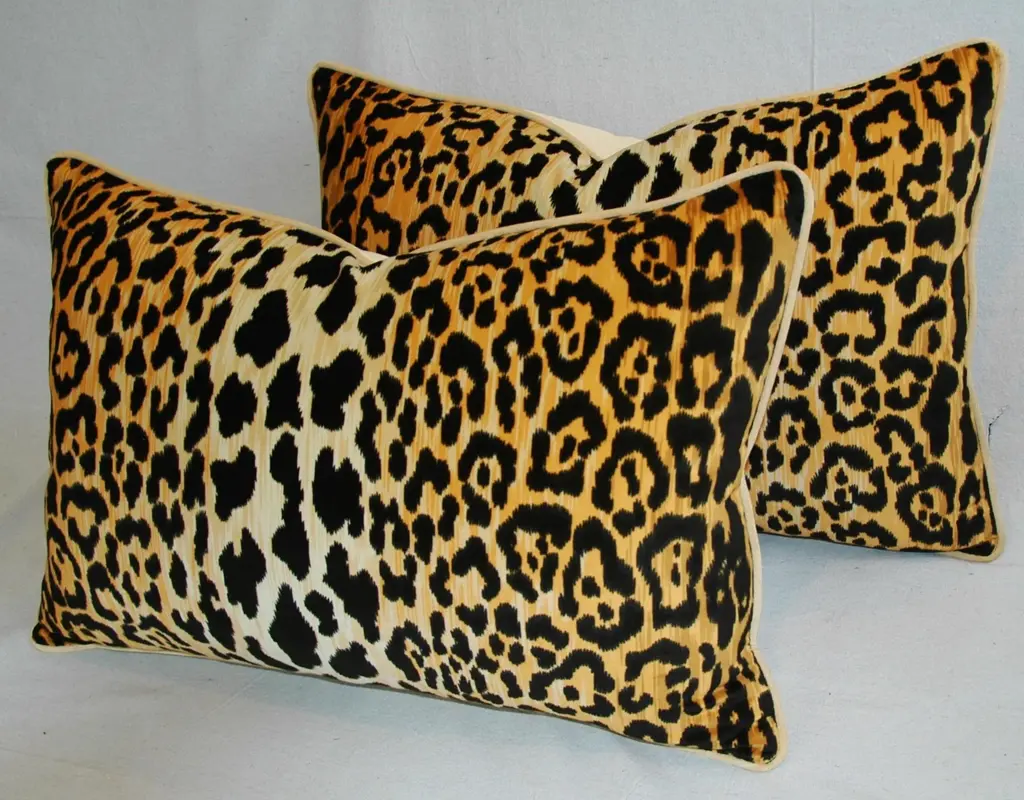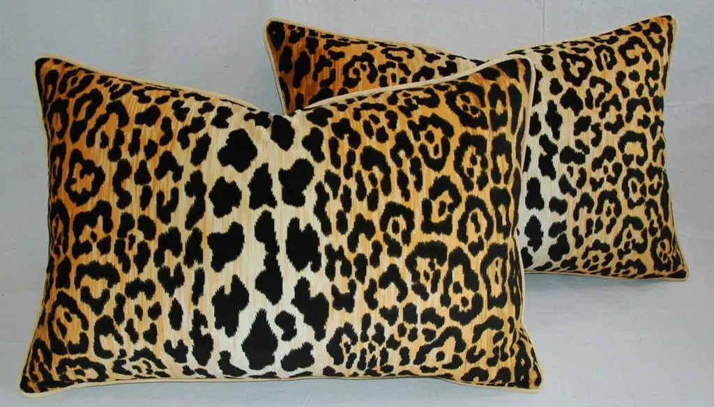 Pair of large custom-tailored pillows in a new/never used ultra-soft 100% cotton low-nap velvet fabric depicting a safari leopard spot print. The pattern has been meticulously centered on each pillow. Pillow's backs are a new/never-used golden velvet fabric. Pillows are accented with custom matching velvet cord trim, invisible zipper closures, and new plump generous goose down-and-feather inserts. Excellent new, unused condition!!!! ***PLEASE NOTE: I will combine shipping whenever possible if you purchase multiple items from my shop. Warm regards, Mike Seratt ***Also, don't forget to take a peek at my other current listings...you just might find something you can't live without!!! It's easy just click on my name to the right of any listing highlighted in black, "Mike Seratt of The Prized Pig," and presto it will bring you to my storefront!!! Cheers!!! Mike Seratt I SHIP OUT IMMEDIATELY, SO THE ESTIMATION YOU SEE FOR THE DELIVERY TIMELINE IS CHAIRISH'S OVERALL GENERAL TIMELINE, BUT I WILL GET THIS OUT THE NEXT DAY AND DELIVERY IS USUALLY 5-7 DAYS AT MOST