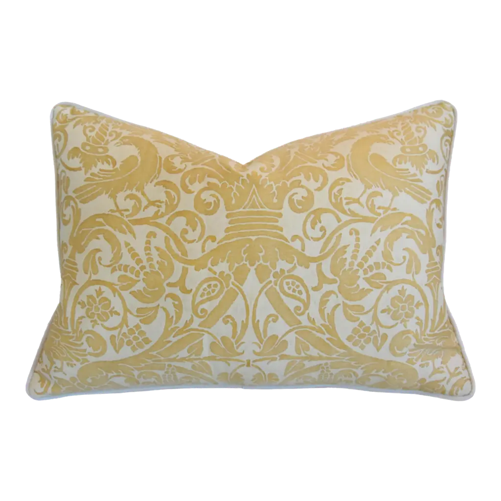 This distressed damask print pillow lends a stylishly relaxed traditional flair to any decor. Paired with a solid or ticking stripe, this damask can bring urban farmhouse or cottage character to your most comfortable nestling places.