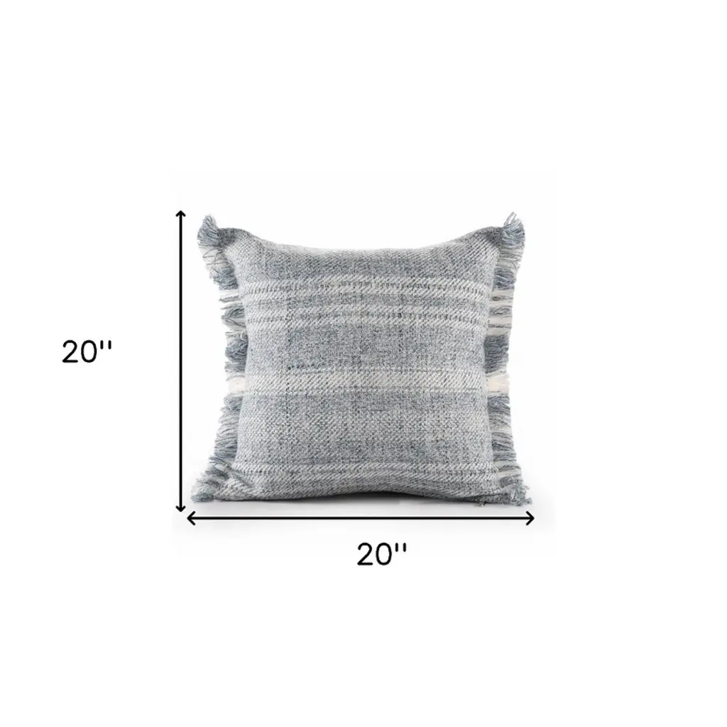 Homeroots 20" Denim Blue And Ivory Fabric Striped Throw Pillow