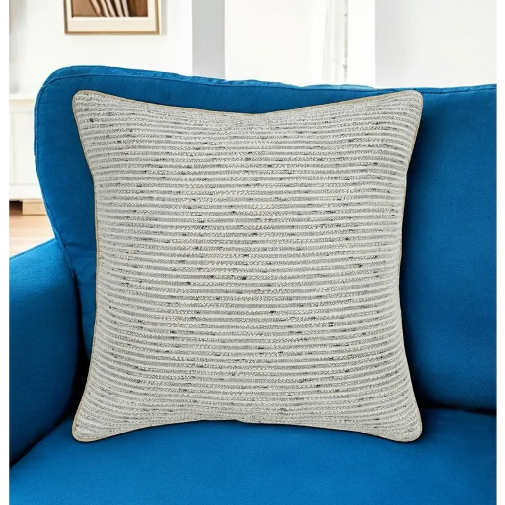 Homeroots 20" Gray And Cream Striped Cotton Throw Pillow