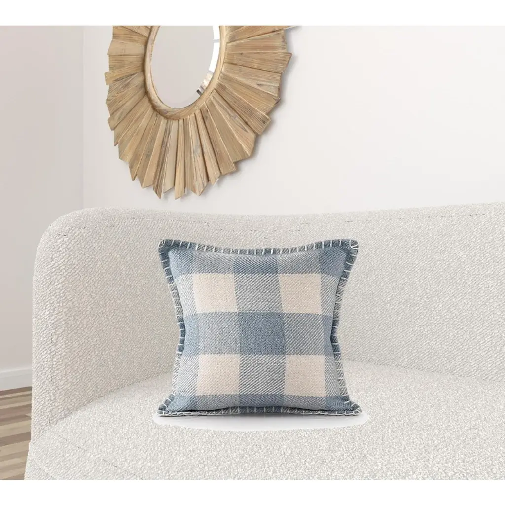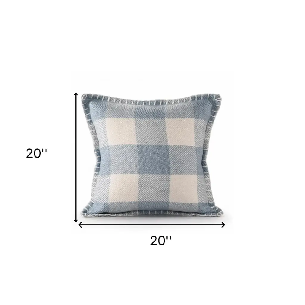 Homeroots 20" X 20" Light Blue And Ivory Polyester Plaid Zippered Pillow