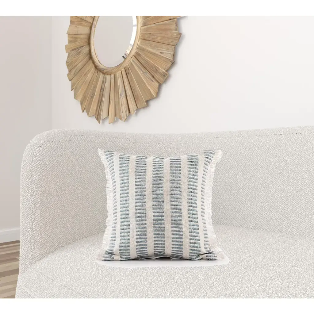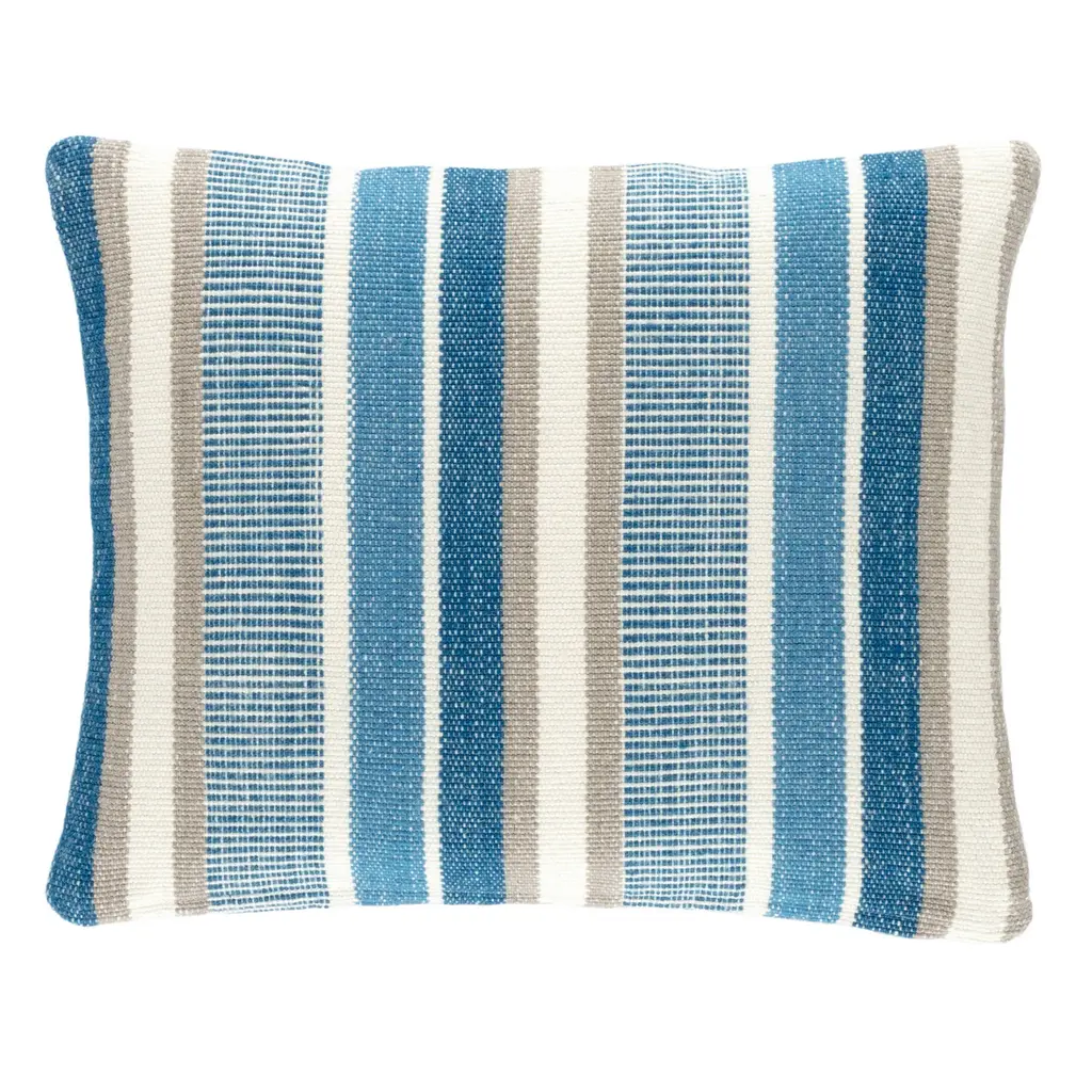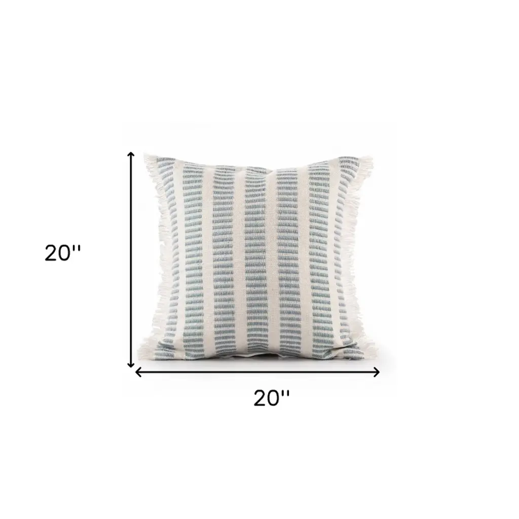 Homeroots 20" X 20" Medium Blue And Ivory Polyester Striped Zippered Pillow
