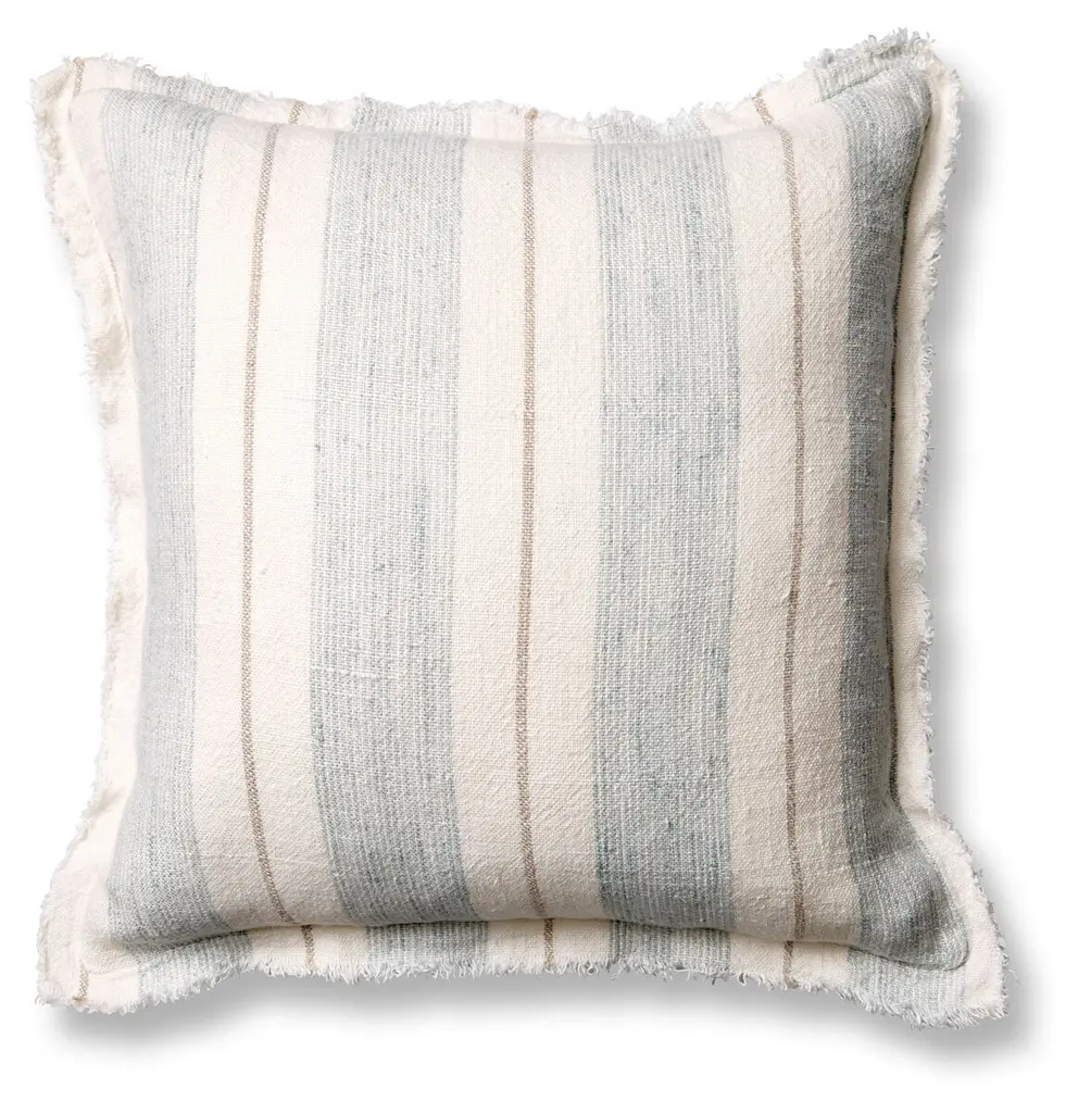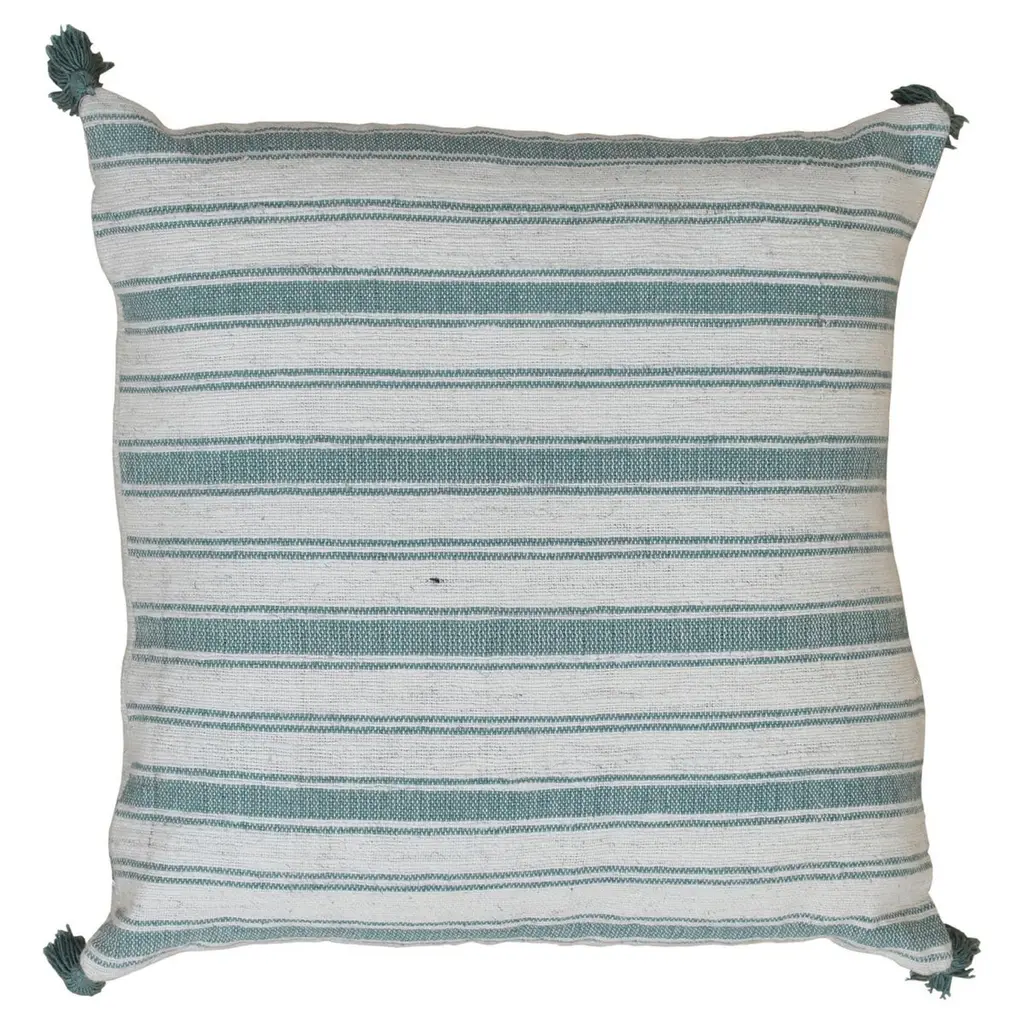 The 20" x 20" medium blue and ivory polyester striped zippered pillow is the perfect decorative accessory for your home. Durable medium blue and ivory polyester has been used to give this pillow a beautiful look that will stand the test of time. Great to use on its own or mix with other decorations for the perfect look. Decorative pillows are a great way to change up the look and feel of your space easily and quickly. 4" H x 20" W x 20" D