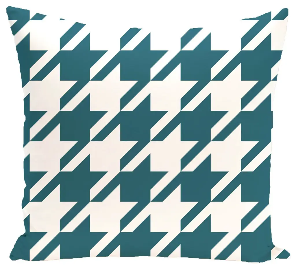 Houndstooth Geometric Print Outdoor Pillow, Blue Suede, 20"x20"