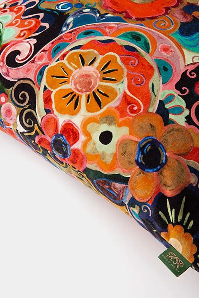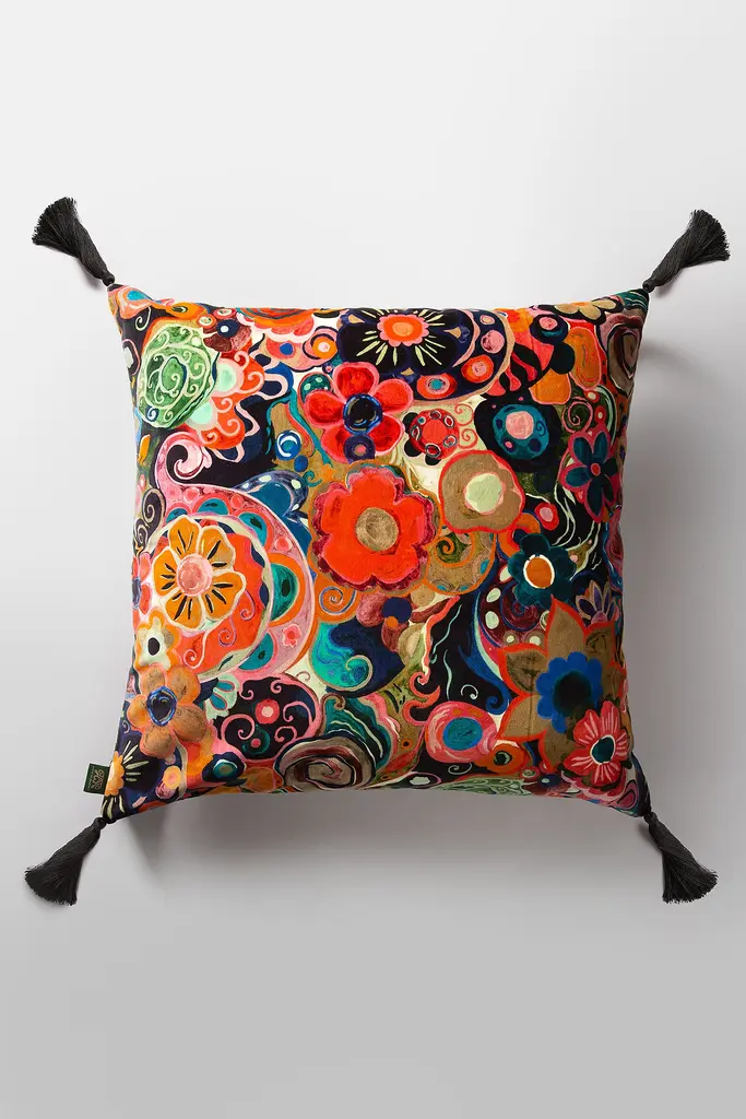 All sales are final, no returns accepted Fall under the spell of the ‘Song of the Sea’ with NANJIZAL. Inspired by the spectacular Cornish sea cave’s crystalline waters and ornate, spiralling seashells, be enchanted by this luxurious tasselled velvet cushion in the sublime ‘Liquorice’ colourway. Outer: 100% cotton velvet Filling: 100% British wool Dry Clean Only Imported Dimensions 23.6" x 23.6"