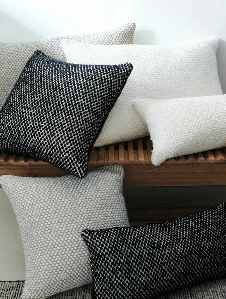 Made of a soft wool, cotton, and rayon blend, the Huddle Pillow features a nubby raised texture. It's from Maharam Design Studio, the NYC-based firm that specializes in the design and development of textiles for residential and commercial interiors. Balancing an appreciation of history with a focus on aesthetic and industrial innovation, Maharam’s textiles reside in the permanent collections of MoMA, Cooper Hewitt and the Art Institute of Chicago, among others.