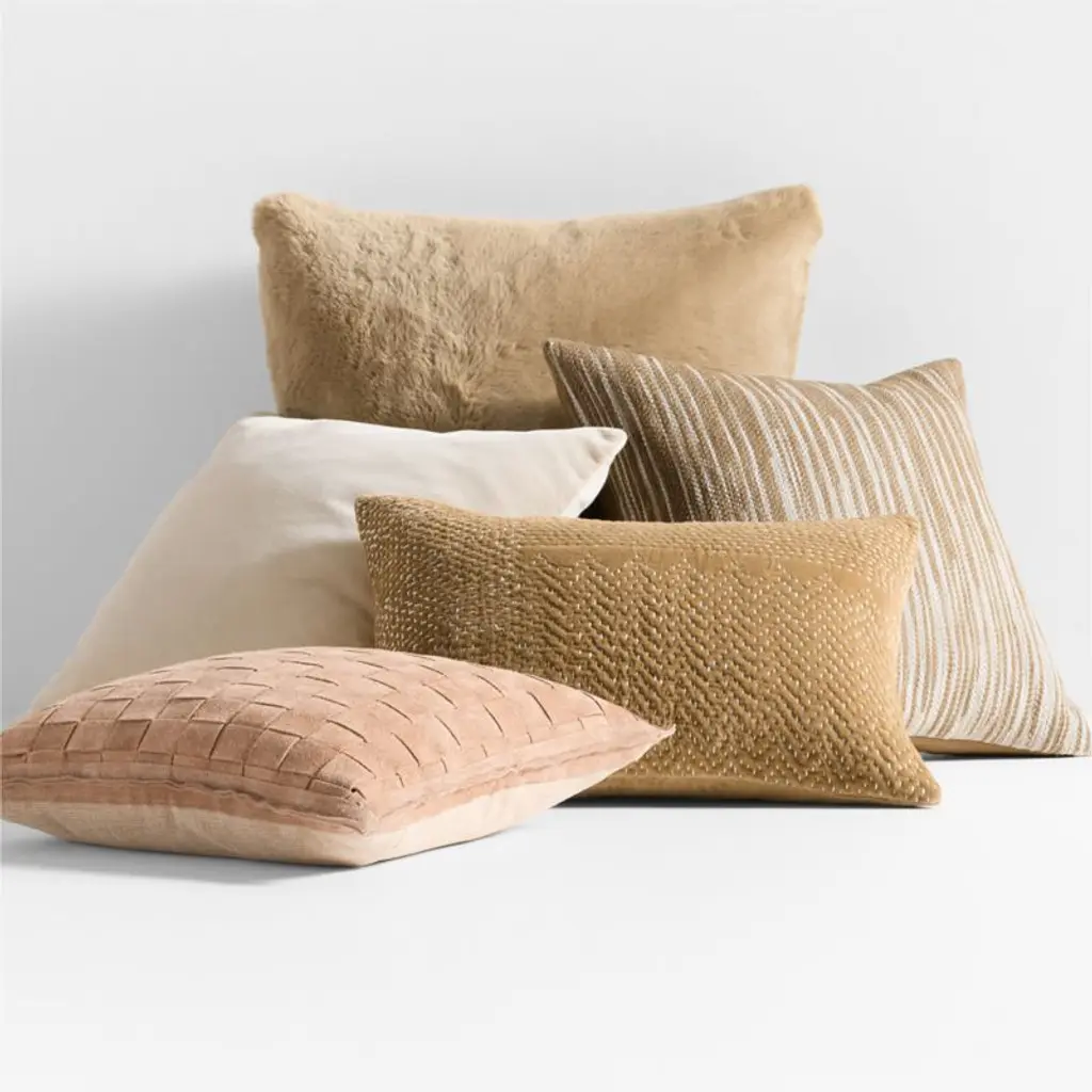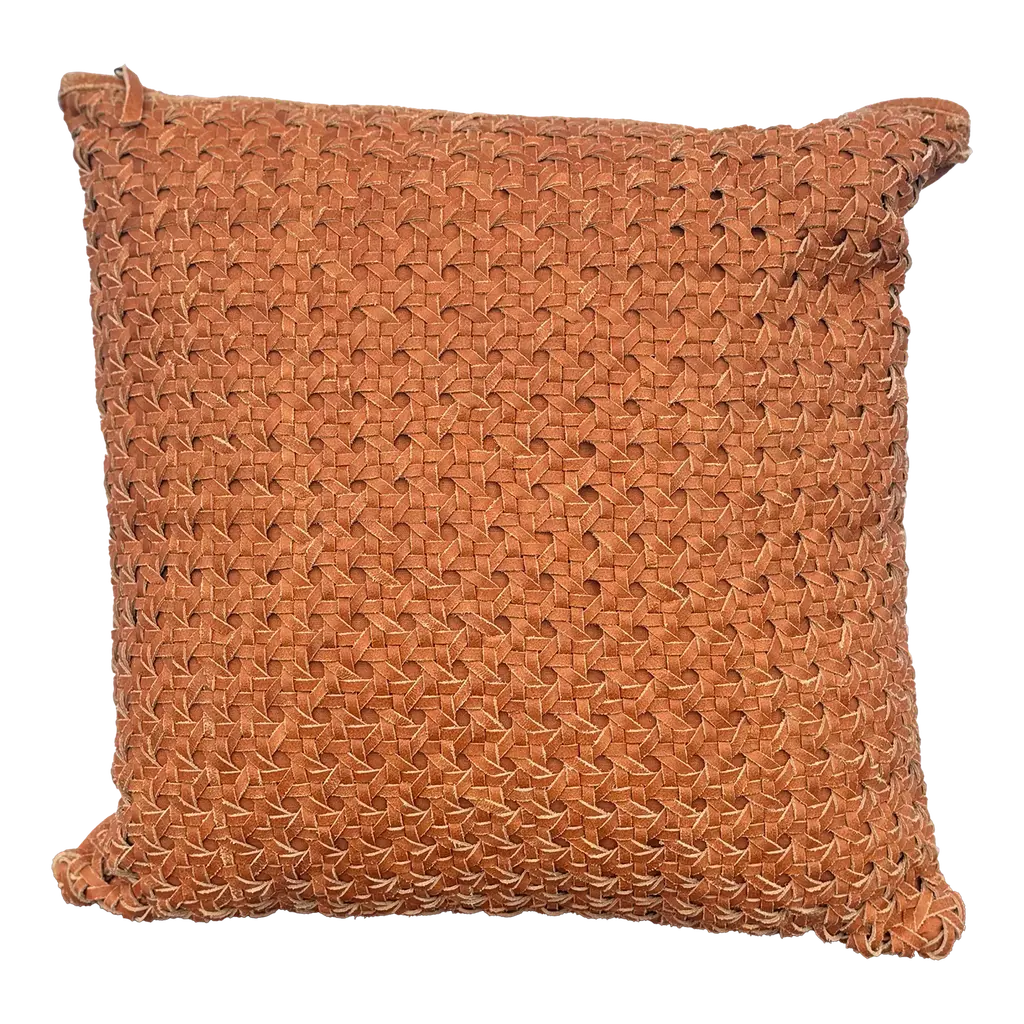 Wide strips of tan suede intersect in our richly textured throw pillow. The soft and durable leather weaves a modern organic look. Toss Hyde onto a sofa, armchair or bed to bring an elevated touch of rustic luxe to your decor, or layer with our velvet, wool and sheepskin throw pillows in the same classic camel hue for a chic monochromatic mixed-material look. Our exclusive woven suede pillow includes your choice of a plush feather-down or lofty down-alternative insert.