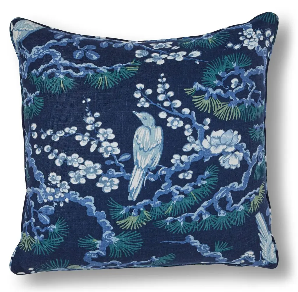 Hydrangea Bird Emerald Blue 22 X 22 In Pillow