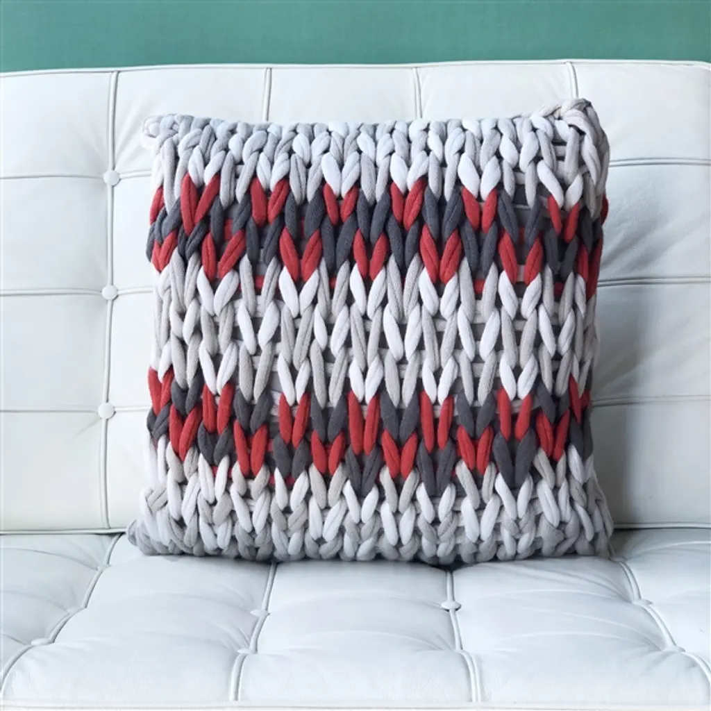 Hygge Nordic Red And Gray Chunky Knit Pillow