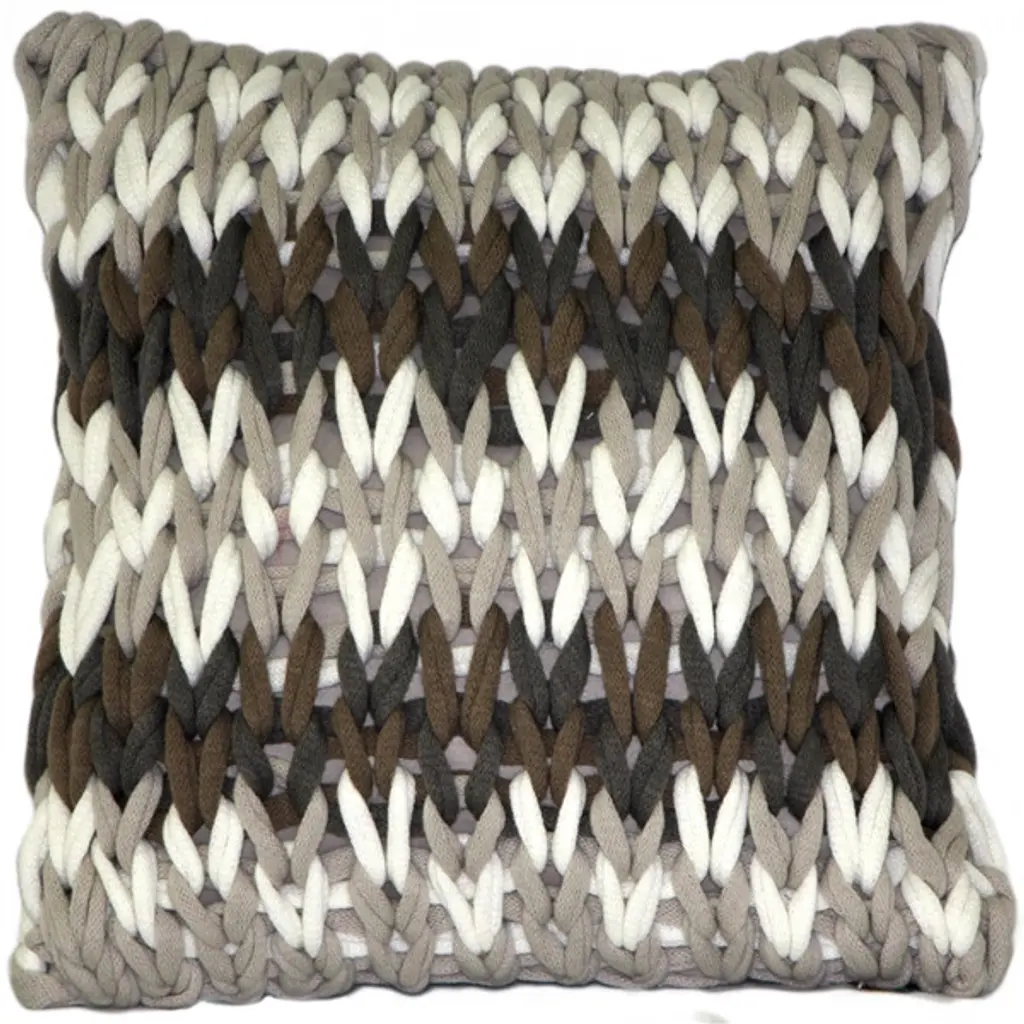 Soft red, gray, taupe and cream blend together in the Hygge Nordic Red and Gray Chunky Knit Pillow. It is backed with a smooth matching taupe woven fabric. This stunning pillow will bring a little country cottage warmth to any home. Size: 18"x18" Square Fabric: 100% Acrylique Knited front only/back in matching color woven fabric Hidden zipper closure Cold water wash separately, tumble dry low Made in Canada: Designed and made in Pillow Decor's Vancouver workroom.