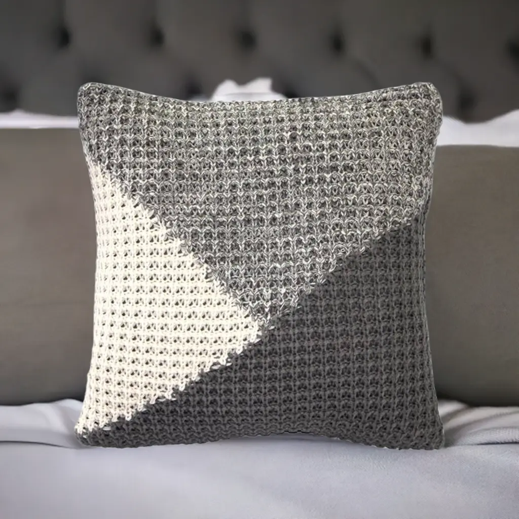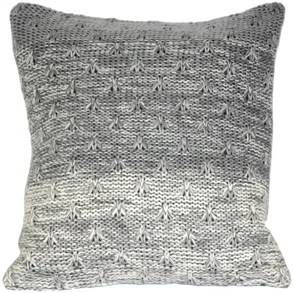 Areas of dark gray, light gray and off-white form a pleasing angular pattern in the Hygge North Star Knit Pillow. This soft knit pillow would be a fantastic addition to any home, be it urban contemporary or cottage-country traditional. It is backed with a gray, smooth woven fabric. Size: 18"x18" Square Fabric: 100% Acrylique Knited front only/back in matching color woven fabric Hidden zipper closure Cold water wash separately, tumble dry low Made in Canada: Designed and made in Pillow Decor's Vancouver workroom.