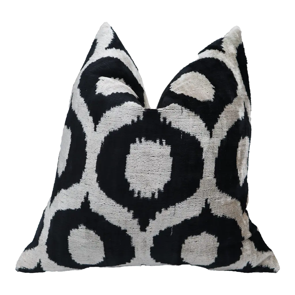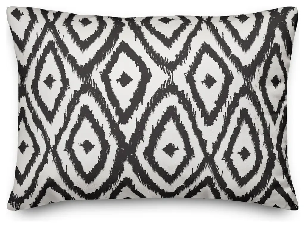 Ikat Dot Geometric Print Pillow, Black, 18"x18"