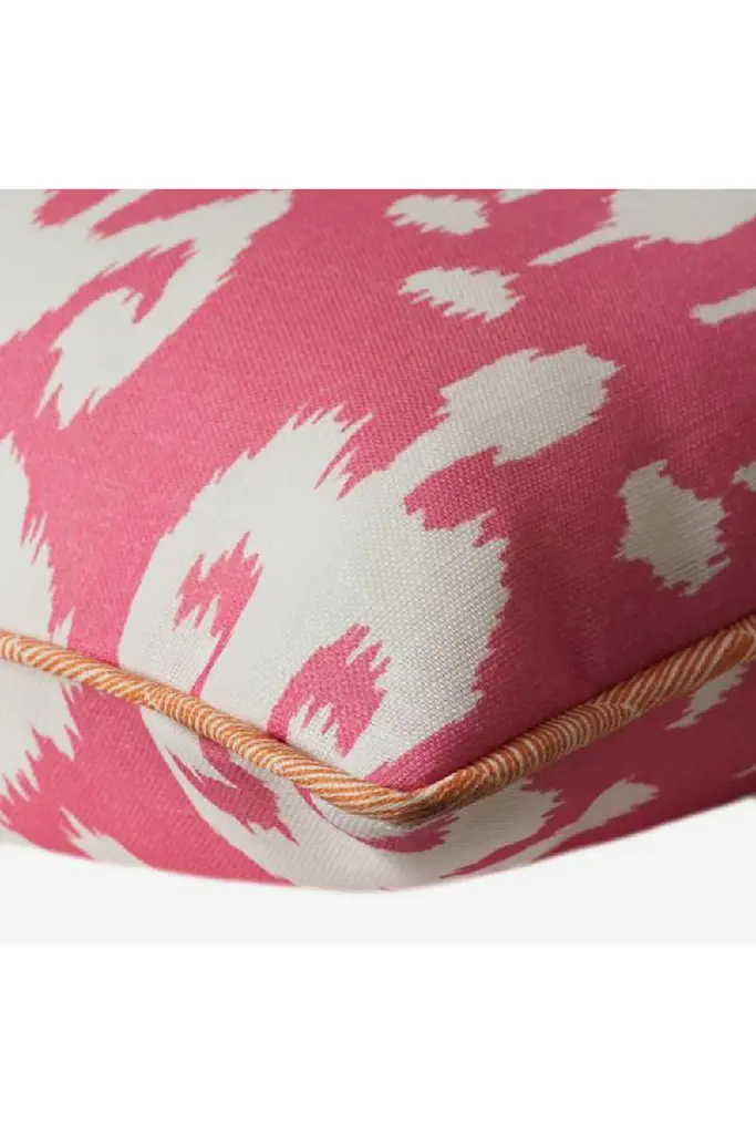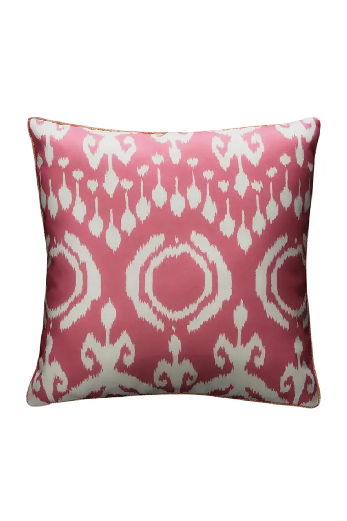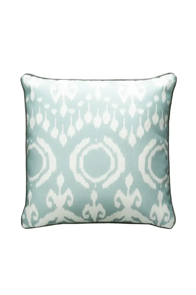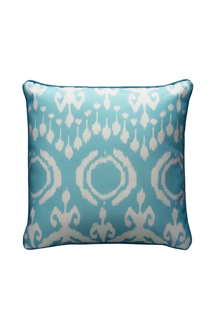 Volcano is a bold yet elegant ikat style design inspired by the traditional ikat prints of Indonesia. In soft neutral tones, the rounded shapes and flowing lines are relaxed and organic. Finished with complimentary velvet piping this cushion feels smart and contemporary, perfect for turning your outdoor space into a cozy and comfortable living area.This cushion is part of our collection 'The Great Outdoors, it has a shower resistant finish which is also anti-mold, anti-mildew, and anti-microbial, and has been filled with a hollow fiber pad. Each fabric has been printed using EcoFast digital pigment printing methods, which use 50% less water than traditional print methods. We do recommend, however, that these scatter cushions are looked after carefully and are best used in dry weather. As with most outdoor textiles, they prefer to be stored inside when they are not being used, or during periods of wet, cold, or damp weather. - Light Blue, Orange, Pink,