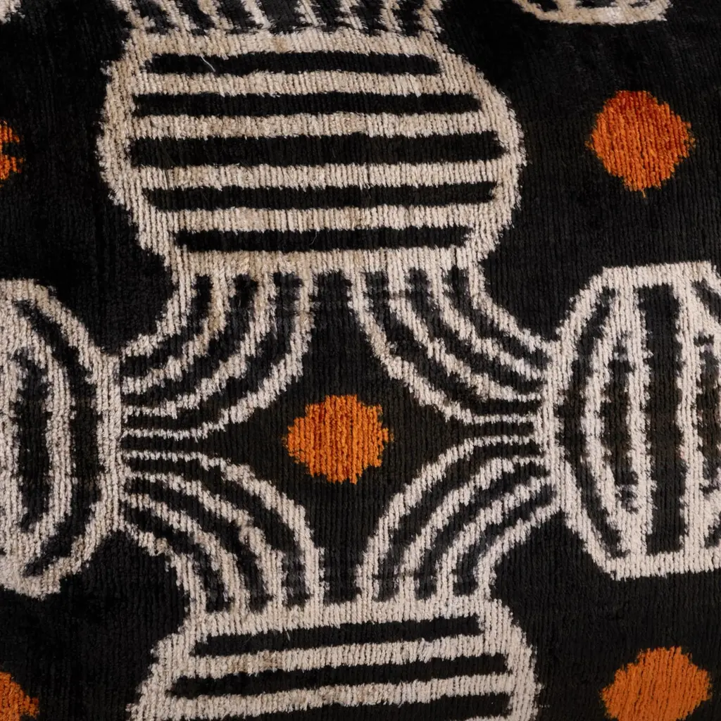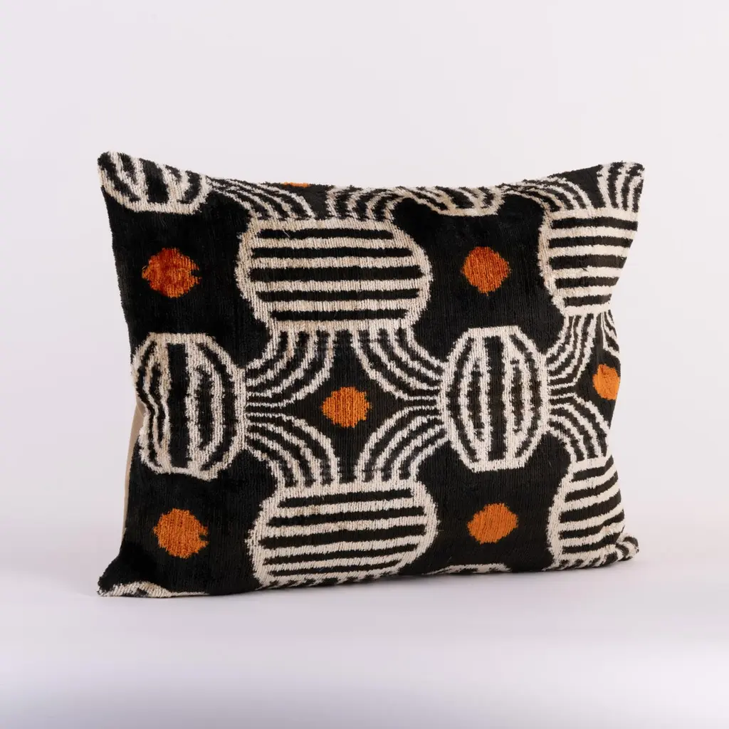 Add a touch of luxury and vibrancy to your home with our Silk Velvet Cushions. Featuring a bold and colorful design on the front, these cushions bring an artistic statement to any space. The rich, sumptuous silk velvet provides a soft, tactile experience, while the neutral cotton back ensures versatility and effortless styling.Perfect for layering on sofas, armchairs, or beds, these cushions seamlessly blend elegance and comfort. The striking contrast between the vivid front and the understated back allows for easy coordination with various decor styles, making them a timeless addition to your interior.Woven with care, each cushion is unique, celebrating traditional craftsmanship and attention to detail.Please note: Due to the handmade nature of this product, slight variations may occur, enhancing its artisanal charm and character. Cushion insert not included.
