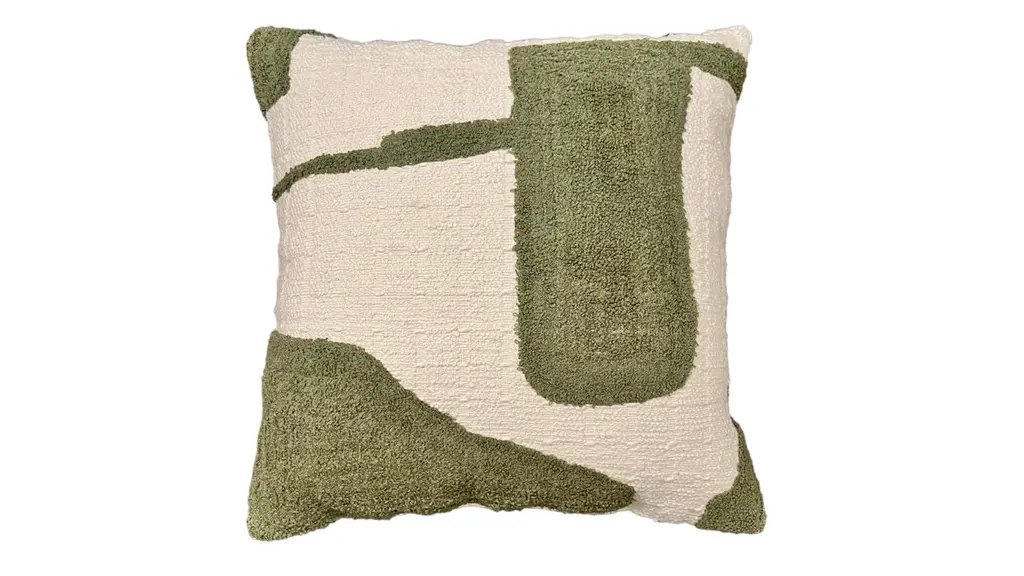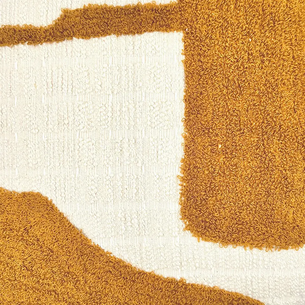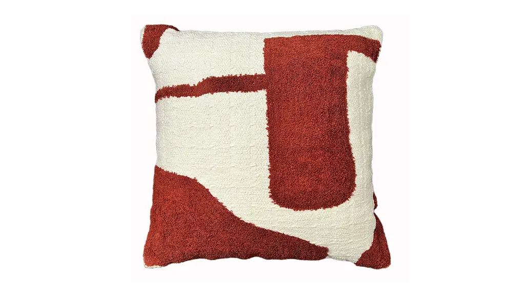 Our Imani Throw Pillow features sweeping curves and interconnected shapes that dance across a 100% cotton foundation. Available in a range of earthy colors against a neutral base set the tone for this artistic addition to any space. A conversation starter, the Imani throw is a unique statement pillow that infuses your space with a personal, one-of-a-kind touch. This pillow is handcrafted by artisans in India. The cover is made from 100% cotton and includes a down-alternative polyester fiber insert, so it’s ready to style right out of the box. Spot clean or professional dry clean only.