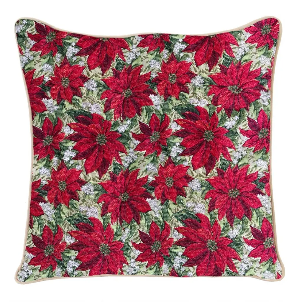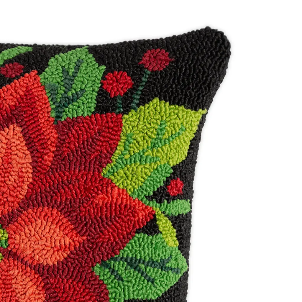 Indoor/outdoor Hooked Polypropylene Poinsettia Throw Pillow