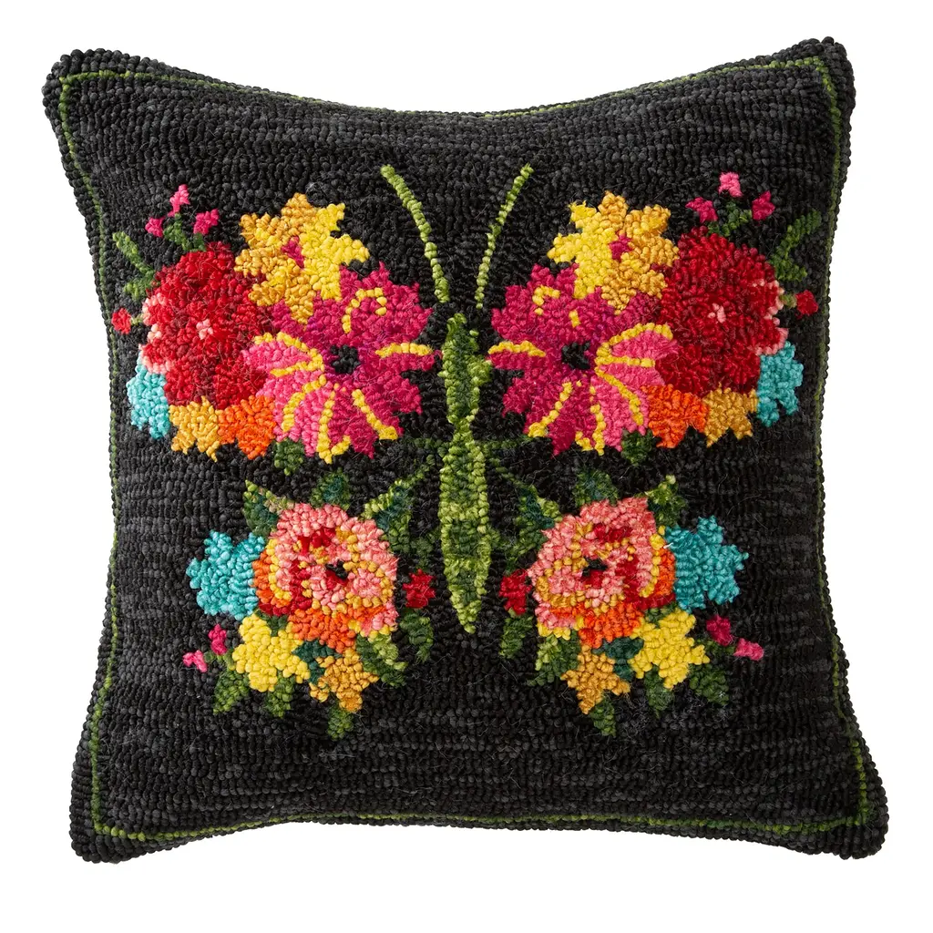 Decorate your holiday home with our Indoor/Outdoor Hooked Polypropylene Poinsettia Throw Pillow for an instant festive update. This hooked accent pillow adds a splash of holiday style to any space. Featuring a large and vibrant red poinsettia centered on a black background. The design comes to life thanks to the detailed hooked pillow face with variations in color and a wonderful texture that adds depth, richness and festive fun to your space. Crafted of all-weather polypropylene, this accent pillow is mildew and fade resistant; it's safe to be used indoors or out. It goes perfectly almost anywhere: porch, deck, sunroom, bedroom or living room. A one-and-done holiday accent, also makes a thoughtful gift! Polypropylene pillow has a zippered cover, polyester fiberfill and poly-canvas backing. Spot clean with a mild soap/water solution or hose down, then air dry. May also be machine washed. Imported.