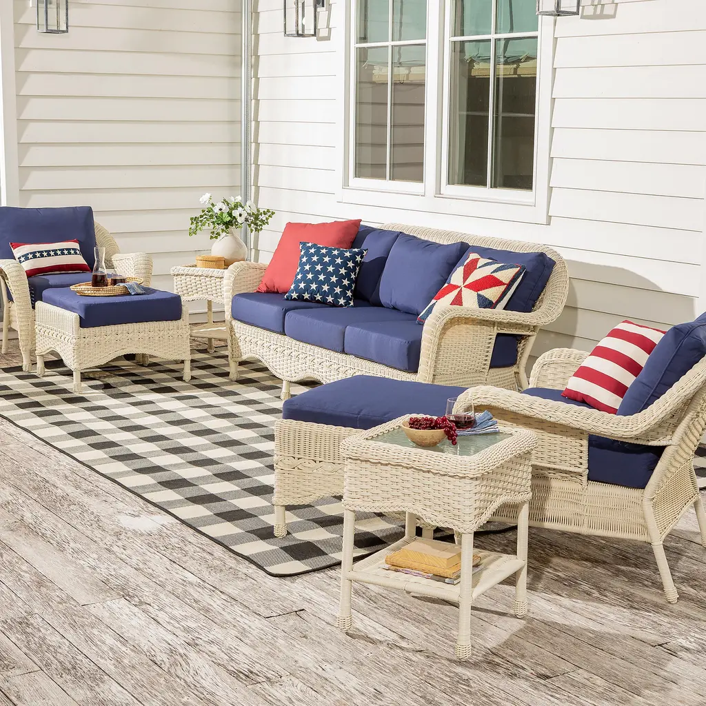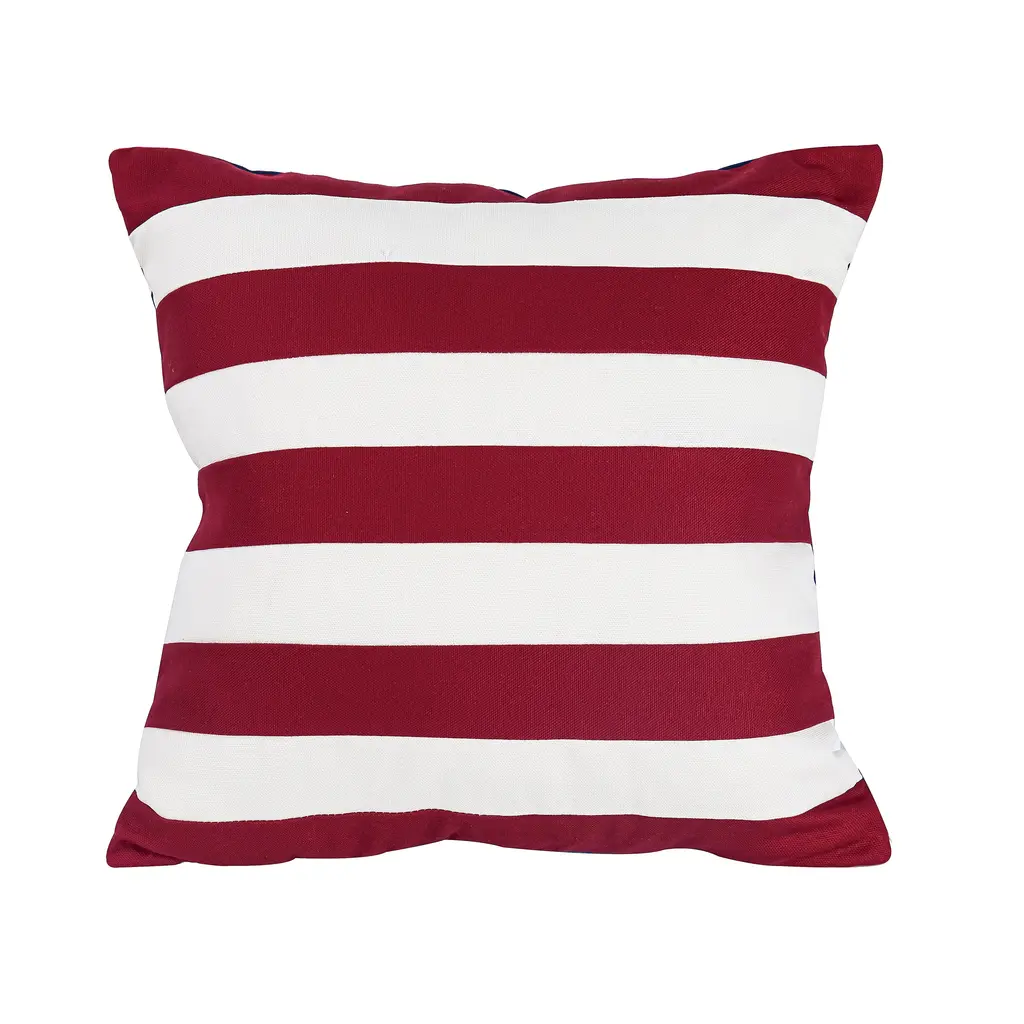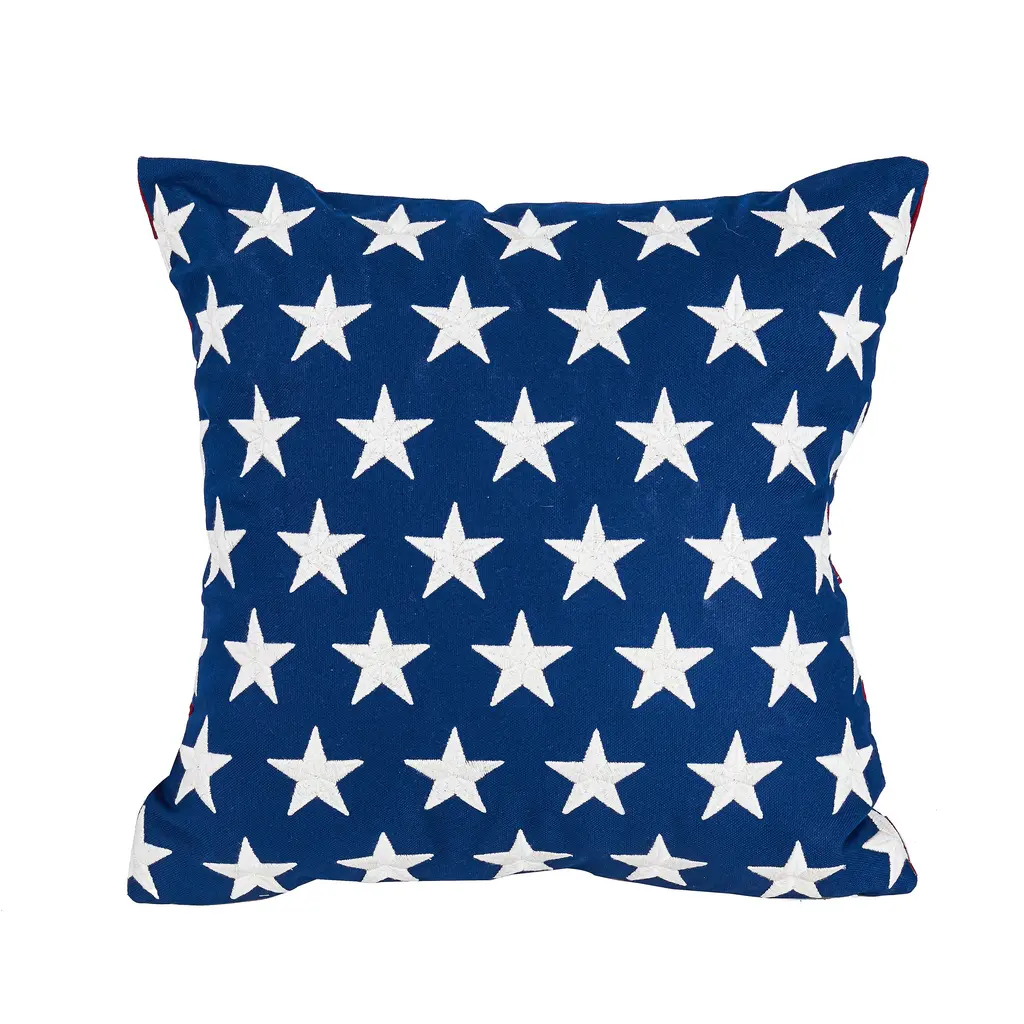 Decorate for American holidays with this versatile Star-Spangled Double-Sided Cotton Flag Pillow. One side is true blue with embroidered stars, while the other side sports the classic pieced red and white stripes of the flag. Switch it up to suit your mood and décor! Outdoor safe pillow can be used on a porch or deck, or anywhere inside the home. Not only is this pillow patriotic, it also offers extra softness and comfort to any furniture. Bring this decorative pillow out for Memorial Day, Independence Day and beyond. Hidden zipper with fill. Spot clean. Imported.